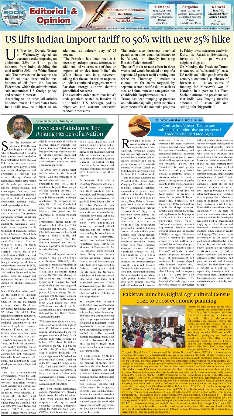 Daily Soon Times Page: 2 August 07, 2025 Daily Soon Times today's ePaper leading English national newspaper from Islamabad, Sargodha, Karachi, Pakistan << First << 2 >> Last >> Page 1Page 2Page 3Page 4 × Daily Soon Times 1.234 1.234 2