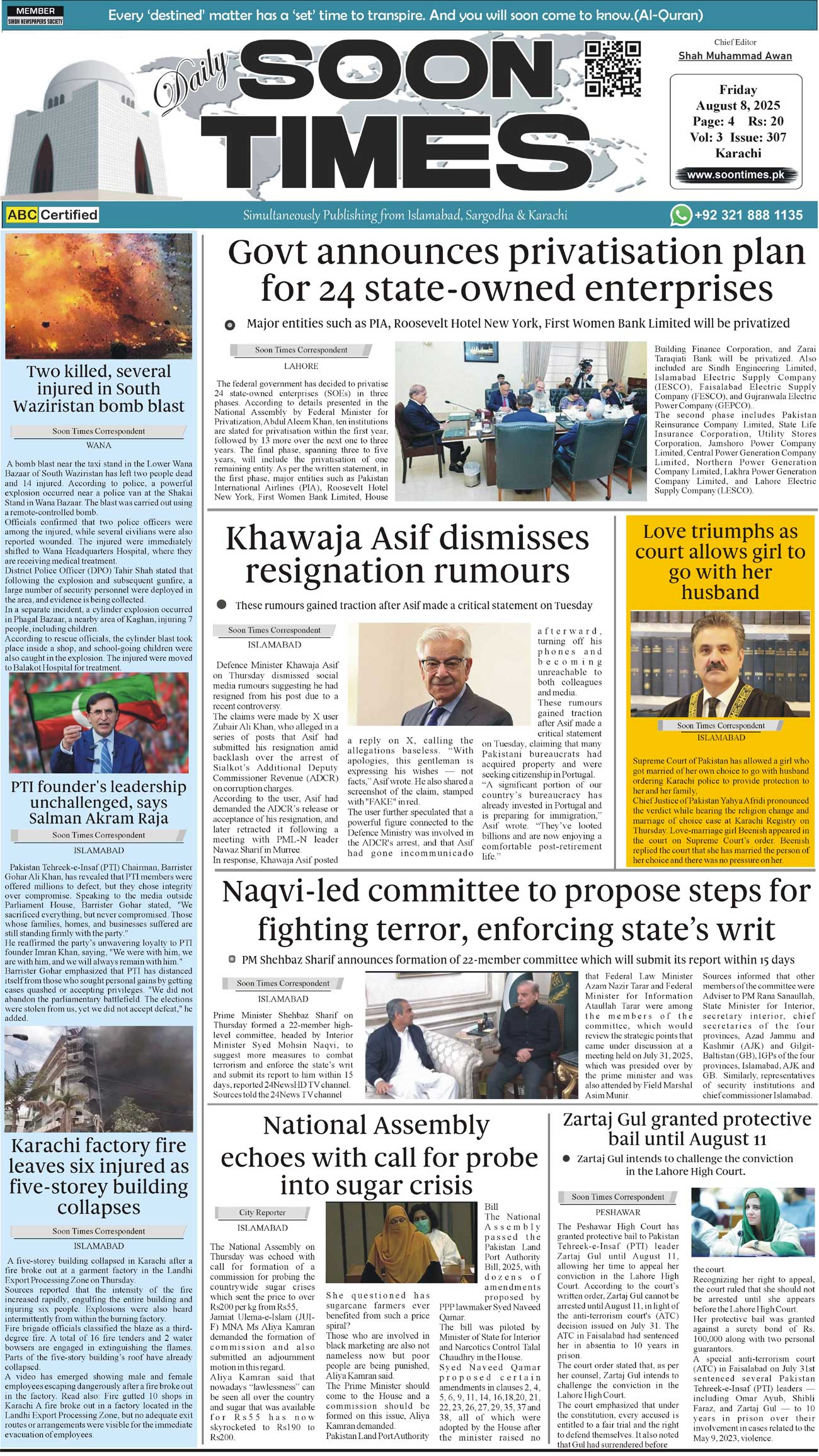 Daily Soon Times August 08, 2025 Daily Soon Times today's ePaper leading English national newspaper from Islamabad, Sargodha, Karachi, Pakistan << First << 1 >> Last >> Page 1Page 2Page 3Page 4 × Daily Soon Times 1k23k4 1k23k4 1k