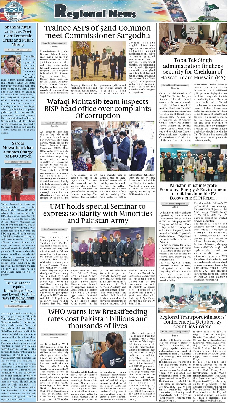 Daily Soon Times Page: 3 August 09, 2025 Daily Soon Times today's ePaper leading English national newspaper from Islamabad, Sargodha, Karachi, Pakistan << First << 3 >> Last >> Page 1Page 2Page 3Page 4 × Daily Soon Times 12.34 12.34 3