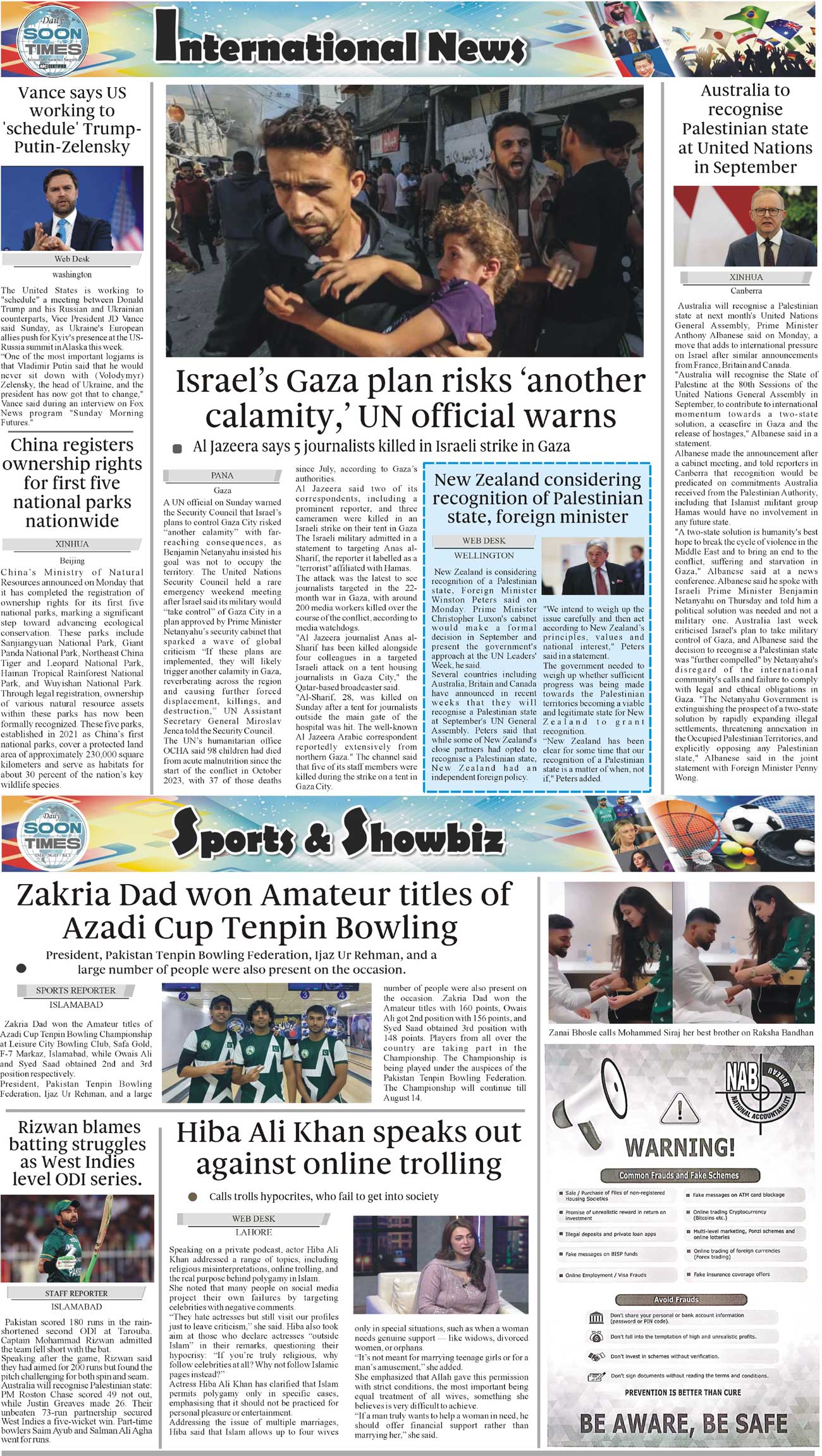 Daily Soon Times Page: 4 August 12, 2025 Daily Soon Times today's ePaper leading English national newspaper from Islamabad, Sargodha, Karachi, Pakistan << First << 4 >> Last >> Page 1Page 2Page 3Page 4 × Daily Soon Times 1k2k3k4 1k2k3k4 4