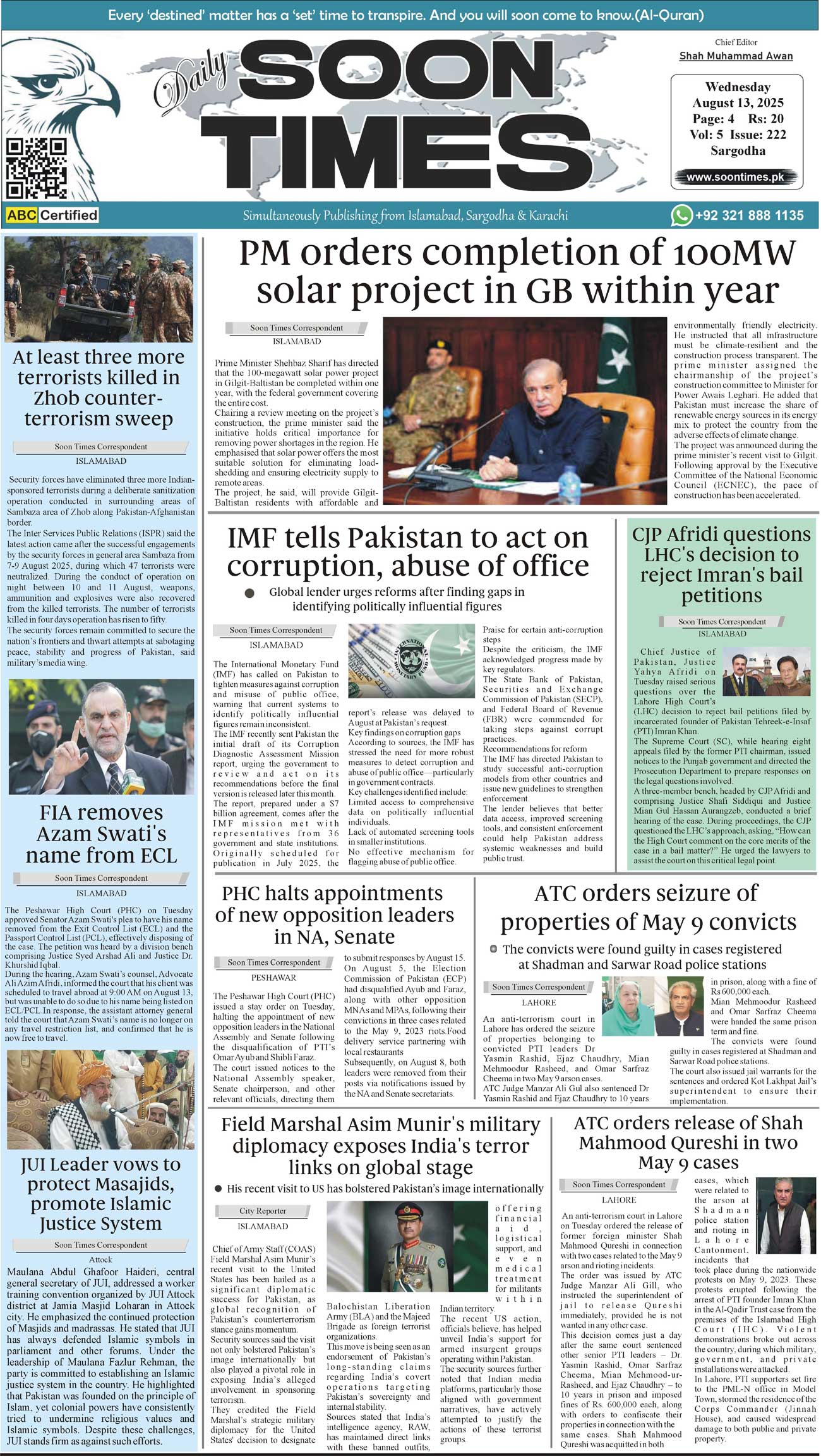 Daily Soon Times August 13, 2025 Daily Soon Times today's ePaper leading English national newspaper from Islamabad, Sargodha, Karachi, Pakistan << First << 1 >> Last >> Page 1Page 2Page 3Page 4 × Daily Soon Times 1234 1234 1