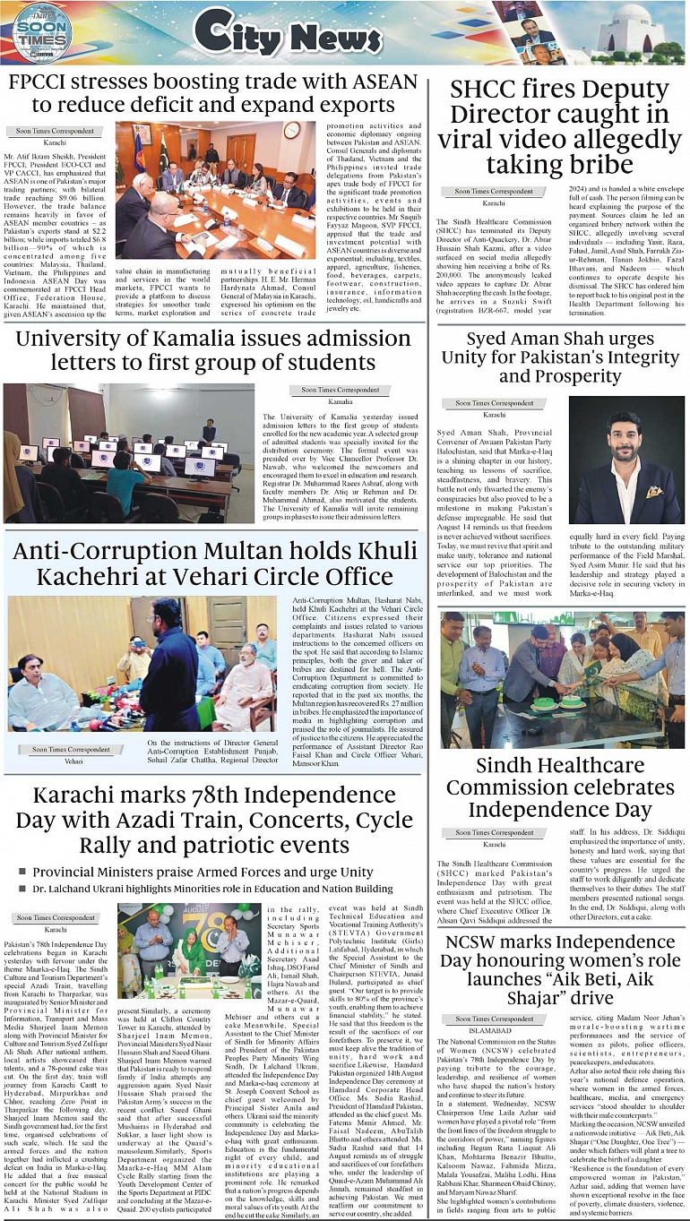 Daily Soon Times Page: 3 August 14, 2025 Daily Soon Times today's ePaper leading English national newspaper from Islamabad, Sargodha, Karachi, Pakistan << First << 3 >> Last >> Page 1Page 2Page 3Page 4 × Daily Soon Times 1.2k3k4 1.2k3k4 3k