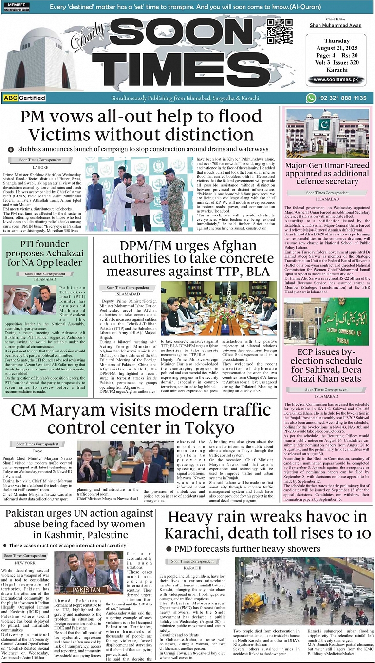 Daily Soon Times August 21, 2025 Daily Soon Times today's ePaper leading English national newspaper from Islamabad, Sargodha, Karachi, Pakistan << First << 1 >> Last >> Page 1Page 2Page 3Page 4 × Daily Soon Times 1k233k 1k233k 1k