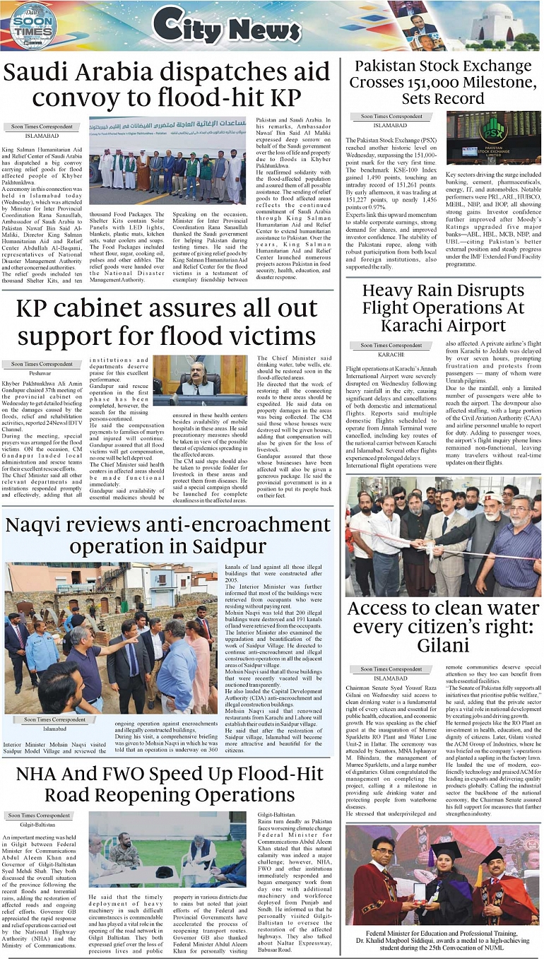 Daily Soon Times Page: 4 August 21, 2025 Daily Soon Times today's ePaper leading English national newspaper from Islamabad, Sargodha, Karachi, Pakistan << First << 4 >> Last >> Page 1Page 2Page 3Page 4 × Daily Soon Times 1k233k 1k233k 3k