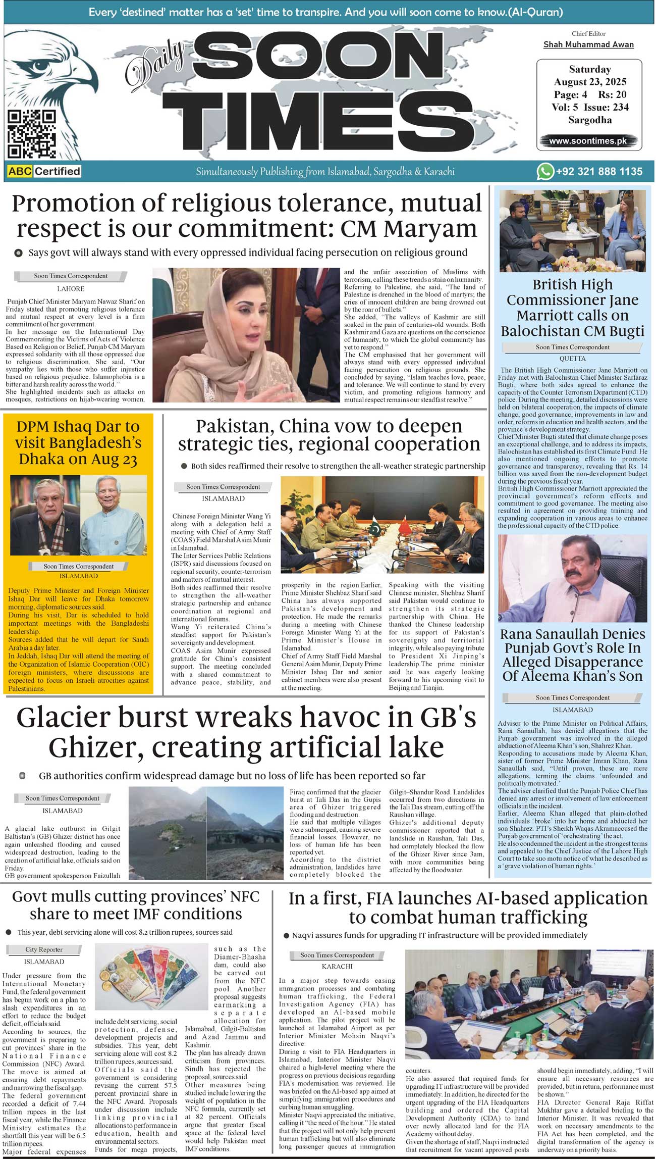 Daily Soon Times August 23, 2025 Daily Soon Times today's ePaper leading English national newspaper from Islamabad, Sargodha, Karachi, Pakistan << First << 1 >> Last >> Page 1Page 2Page 3Page 4 × Daily Soon Times 1234 1234 1