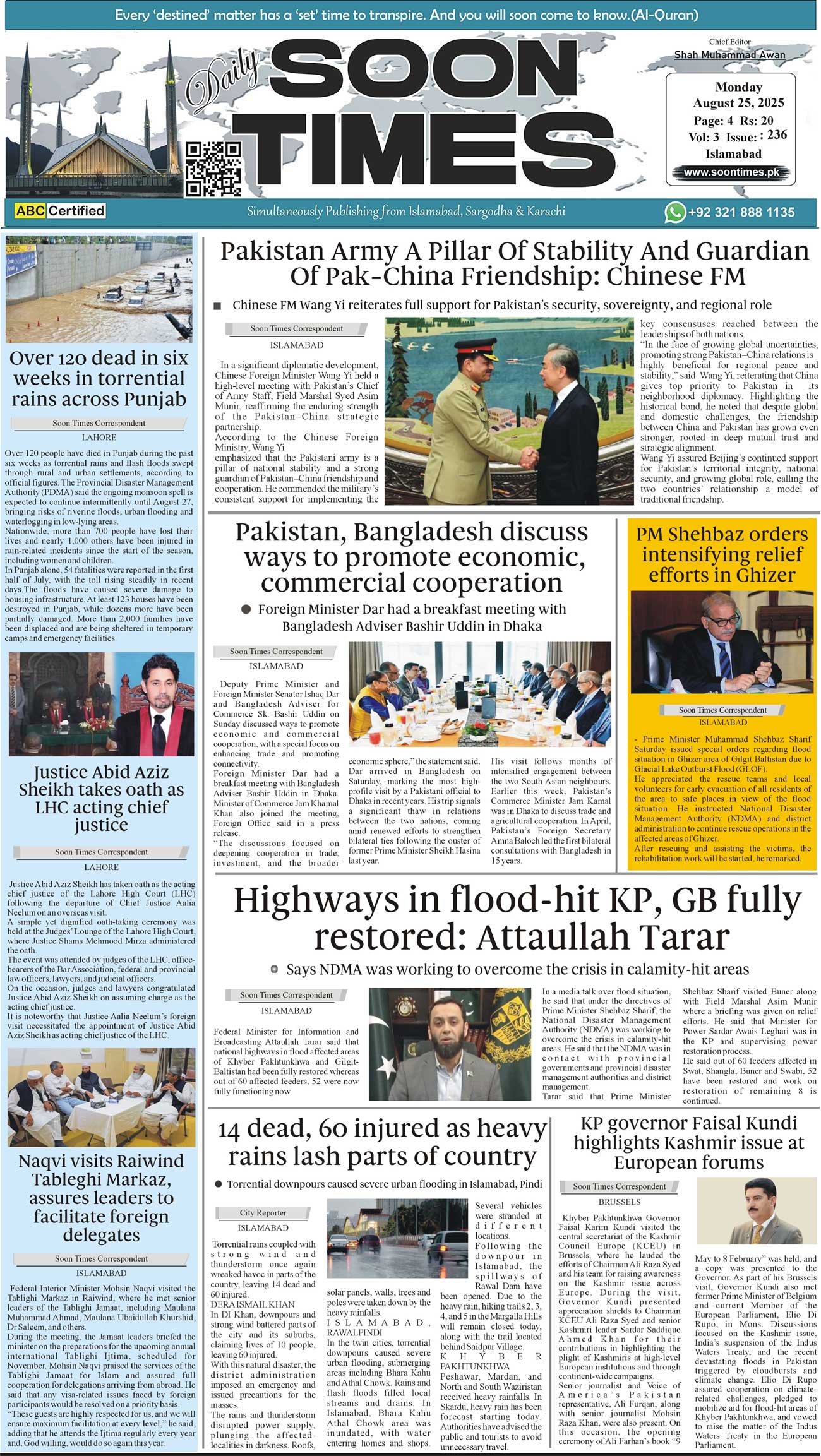 Daily Soon Times August 25, 2025 Daily Soon Times today's ePaper leading English national newspaper from Islamabad, Sargodha, Karachi, Pakistan << First << 1 >> Last >> Page 1Page 2Page 3Page 4 × Daily Soon Times 1.234k 1.234k 1.