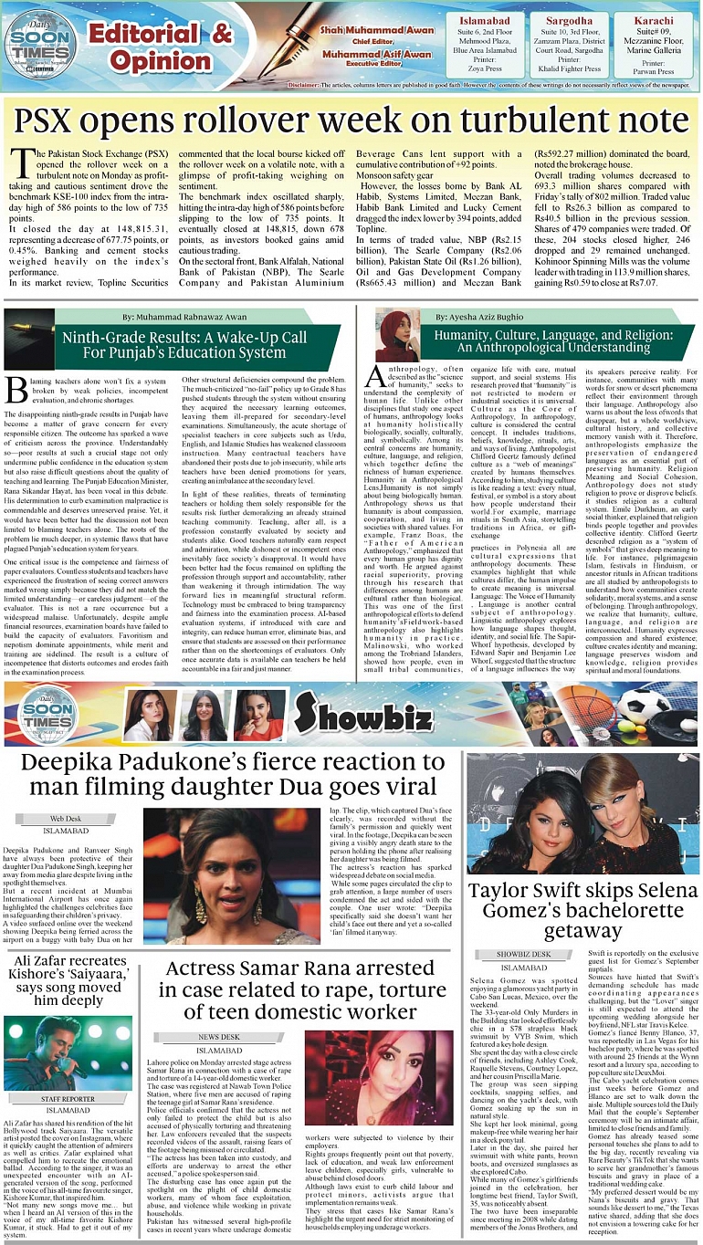 Daily Soon Times Page: 2 August 26, 2025 Daily Soon Times today's ePaper leading English national newspaper from Islamabad, Sargodha, Karachi, Pakistan << First << 2 >> Last >> Page 1Page 2Page 3Page 4 × Daily Soon Times 1.234 1.234 2