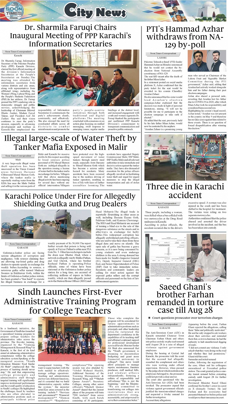 Daily Soon Times Page: 3 August 26, 2025 Daily Soon Times today's ePaper leading English national newspaper from Islamabad, Sargodha, Karachi, Pakistan << First << 3 >> Last >> Page 1Page 2Page 3Page 4 × Daily Soon Times 1k23k4 1k23k4 3k