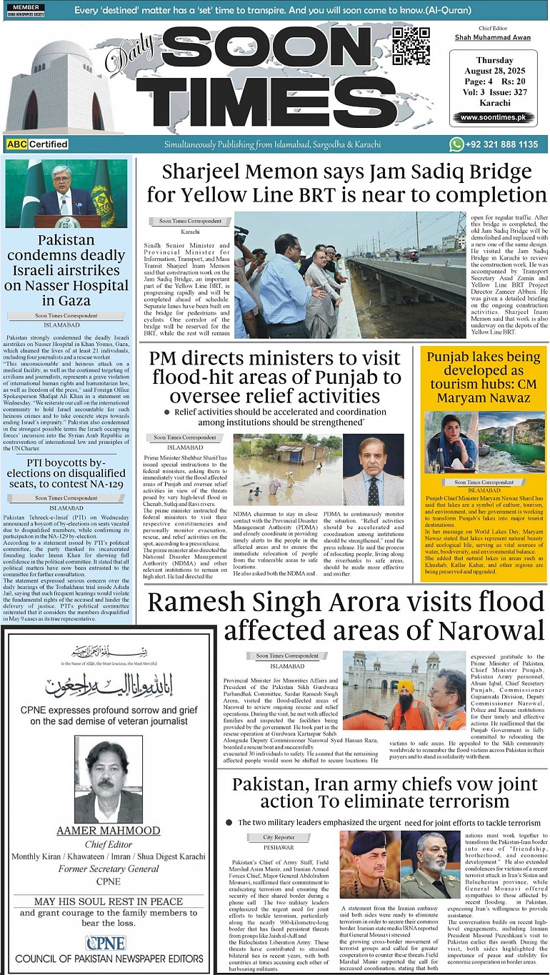 Daily Soon Times today's ePaper leading English national newspaper from Islamabad, Sargodha, Karachi, Pakistan