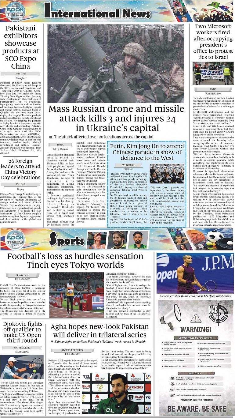 Daily Soon Times Page: 4 August 29, 2025 Daily Soon Times today's ePaper leading English national newspaper from Islamabad, Sargodha, Karachi, Pakistan << First << 4 >> Last >> Page 1Page 2Page 3Page 4 × Daily Soon Times 1.234 1.234 4
