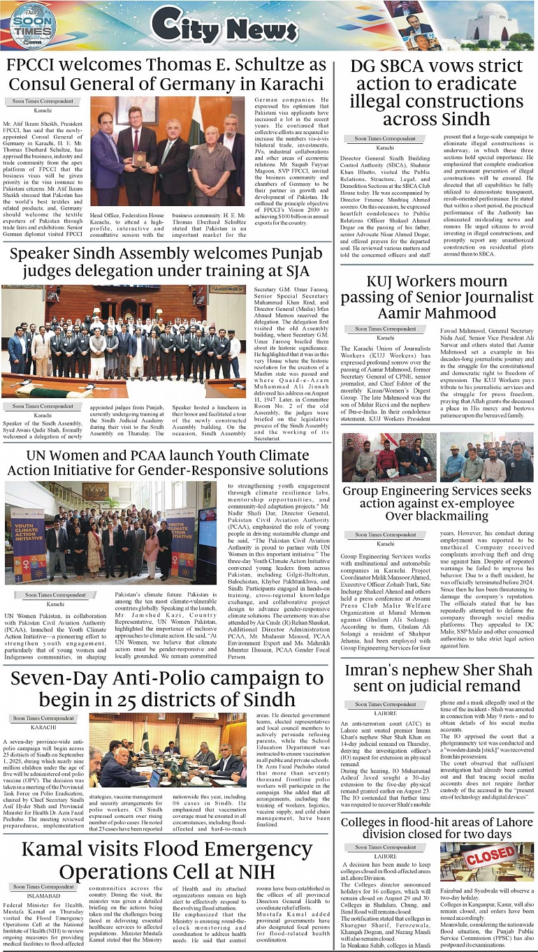 Daily Soon Times Page: 3 August 29, 2025 Daily Soon Times today's ePaper leading English national newspaper from Islamabad, Sargodha, Karachi, Pakistan << First << 3 >> Last >> Page 1Page 2Page 3Page 4 × Daily Soon Times FP-KAR23k4 FP-KAR23k4 3k