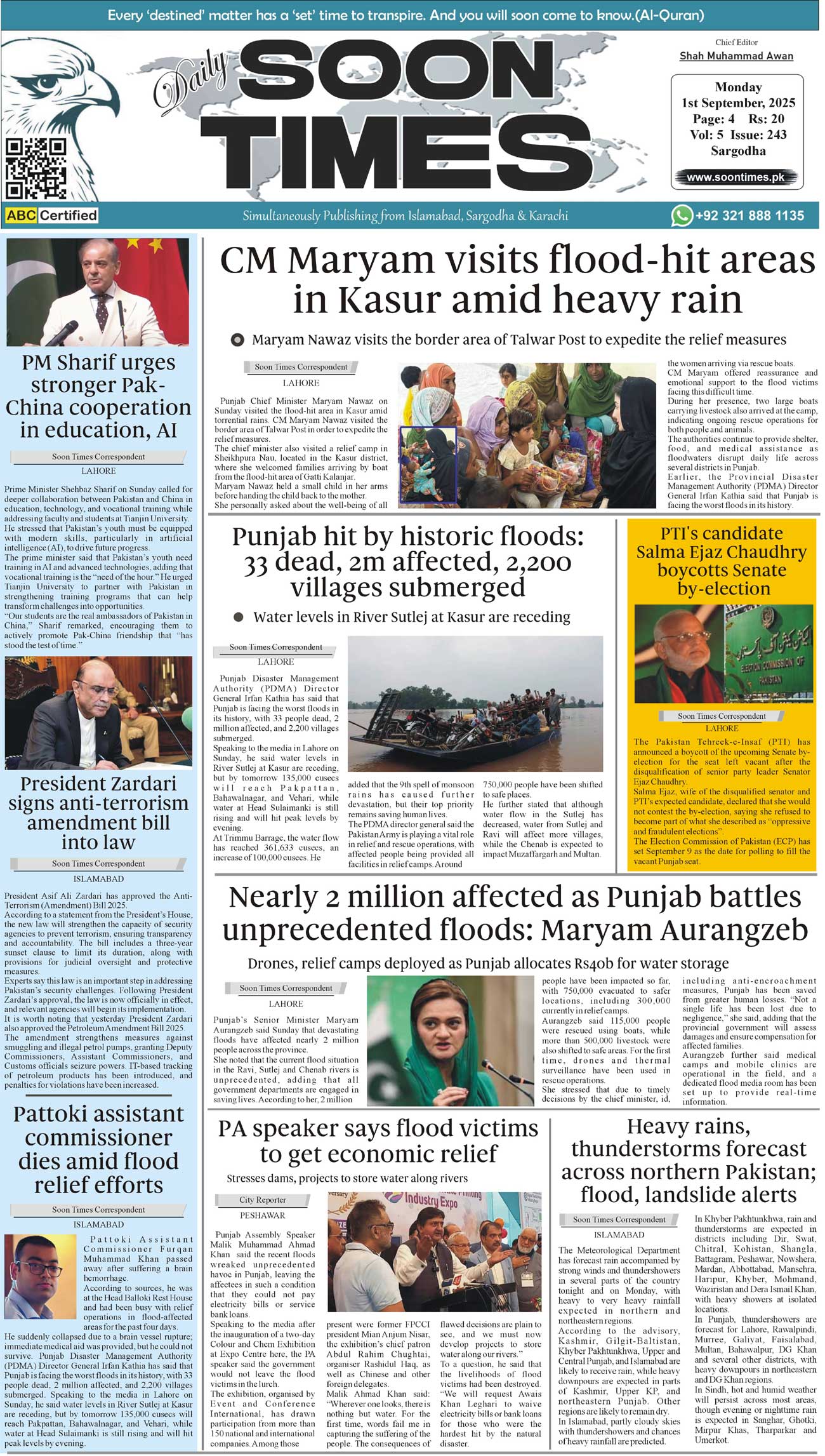 Daily Soon Times September 01, 2025 Daily Soon Times today's ePaper leading English national newspaper from Islamabad, Sargodha, Karachi, Pakistan << First << 1 >> Last >> Page 1Page 2Page 3Page 4 × Daily Soon Times 12,34 12,34 1