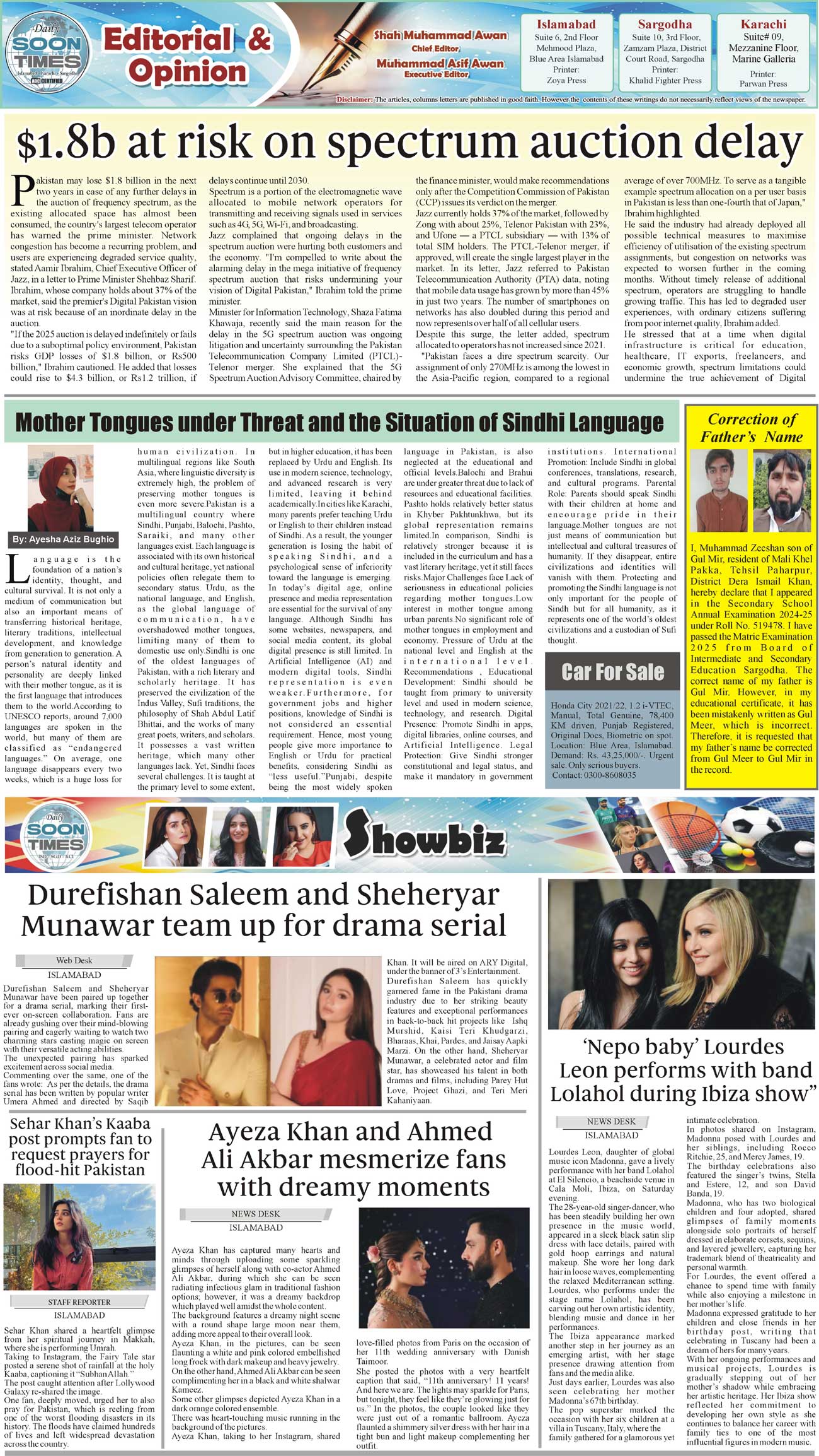 Daily Soon Times Page: 2 September 01, 2025 Daily Soon Times today's ePaper leading English national newspaper from Islamabad, Sargodha, Karachi, Pakistan << First << 2 >> Last >> Page 1Page 2Page 3Page 4 × Daily Soon Times 12,34 12,34 2,