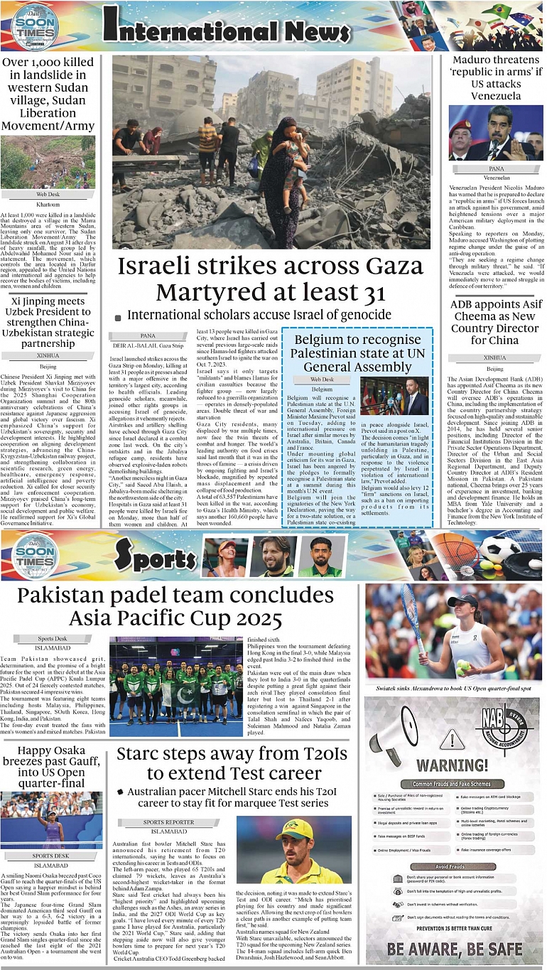 Daily Soon Times Page: 4 September 03, 2025 Daily Soon Times today's ePaper leading English national newspaper from Islamabad, Sargodha, Karachi, Pakistan << First << 4 >> Last >> Page 1Page 2Page 3Page 4 × Daily Soon Times 1234 1234 4