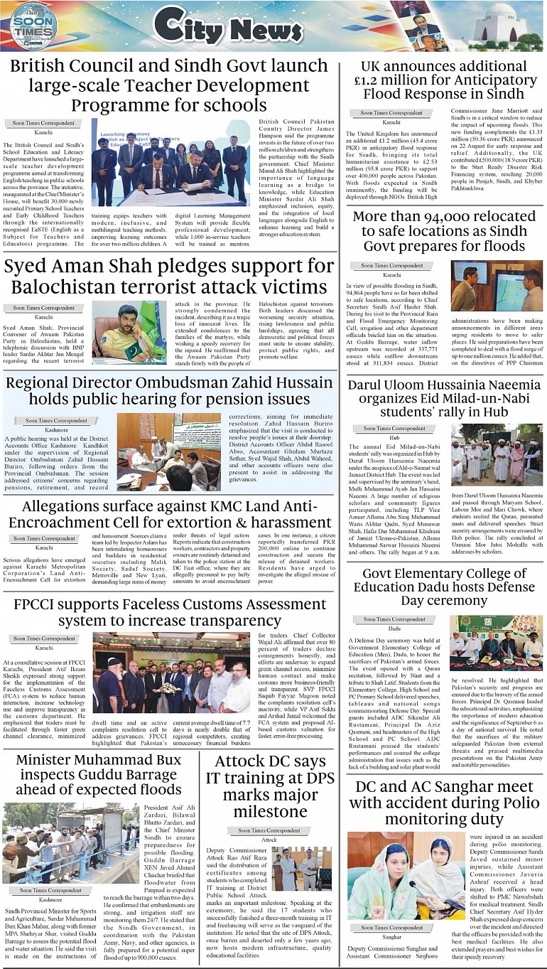 Daily Soon Times Page: 3 September 05, 2025 Daily Soon Times today's ePaper leading English national newspaper from Islamabad, Sargodha, Karachi, Pakistan << First << 3 >> Last >> Page 1Page 2Page 3Page 4 × Daily Soon Times 1kP23k4 1kP23k4 3k