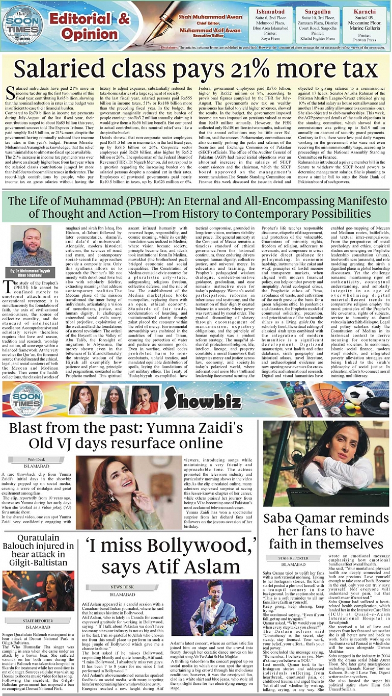 Daily Soon Times Page: 2 September 06, 2025 Daily Soon Times today's ePaper leading English national newspaper from Islamabad, Sargodha, Karachi, Pakistan << First << 2 >> Last >> Page 1Page 2Page 3Page 4 × Daily Soon Times 1k2k3k4k 1k2k3k4k 2k