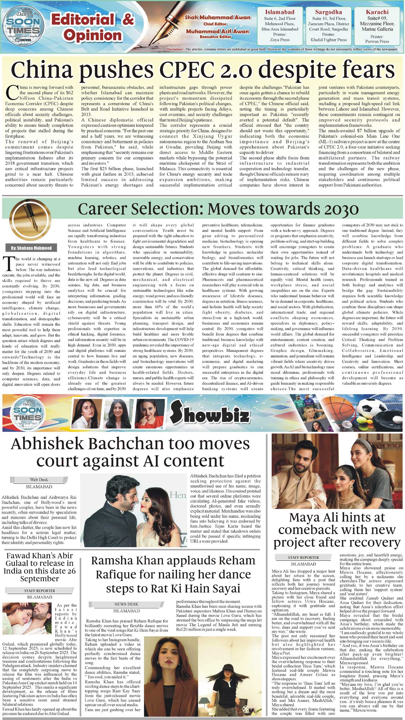 Daily Soon Times Page: 2 September 13, 2025 Daily Soon Times today's ePaper leading English national newspaper from Islamabad, Sargodha, Karachi, Pakistan << First << 2 >> Last >> Page 1Page 2Page 3Page 4 × Daily Soon Times 1.234 1.234 2
