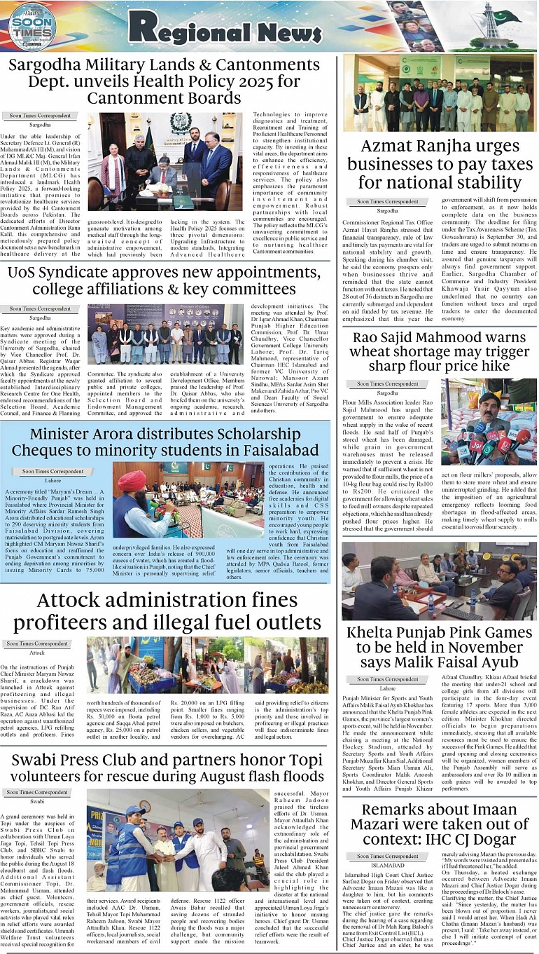 Daily Soon Times Page: 3 September 13, 2025 Daily Soon Times today's ePaper leading English national newspaper from Islamabad, Sargodha, Karachi, Pakistan << First << 3 >> Last >> Page 1Page 2Page 3Page 4 × Daily Soon Times 1.234 1.234 3