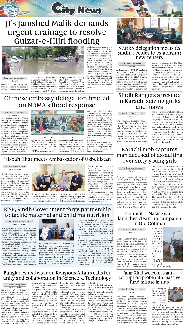 Daily Soon Times Page: 3 September 13, 2025 Daily Soon Times today's ePaper leading English national newspaper from Islamabad, Sargodha, Karachi, Pakistan << First << 3 >> Last >> Page 1Page 2Page 3Page 4 × Daily Soon Times 1k23k4 1k23k4 3k