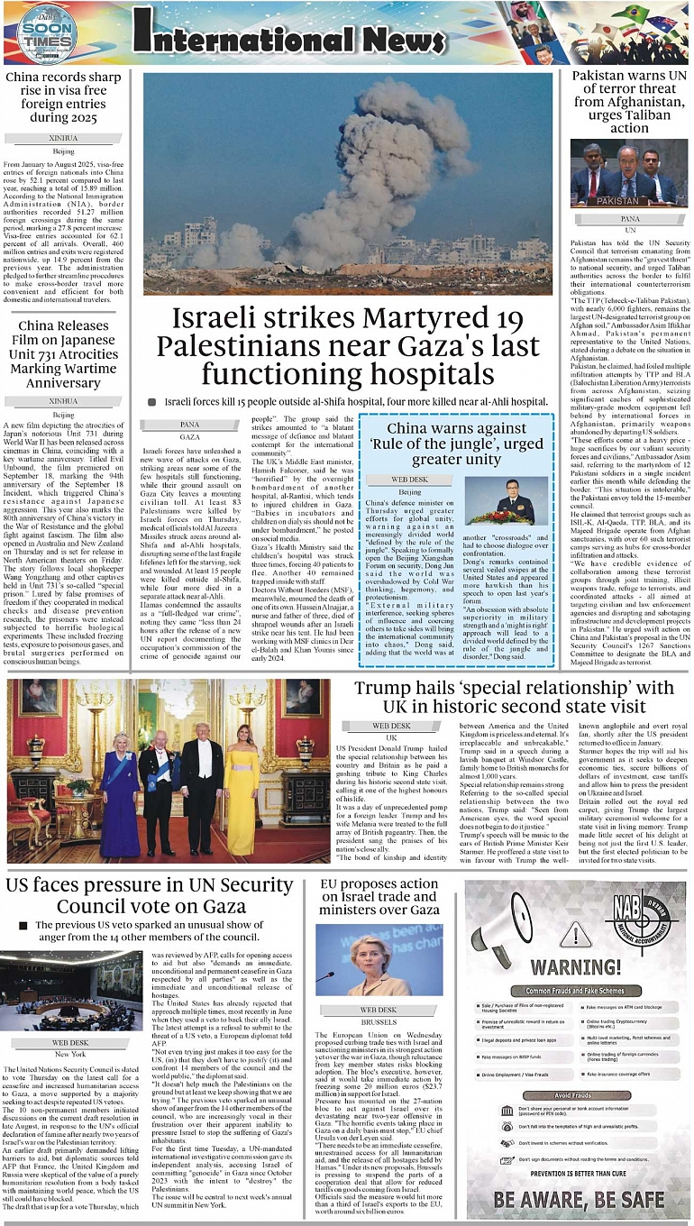 Daily Soon Times Page: 4 September 19, 2025 Daily Soon Times today's ePaper leading English national newspaper from Islamabad, Sargodha, Karachi, Pakistan << First << 4 >> Last >> Page 1Page 2Page 3Page 4 × Daily Soon Times 1.2k34k 1.2k34k 4k