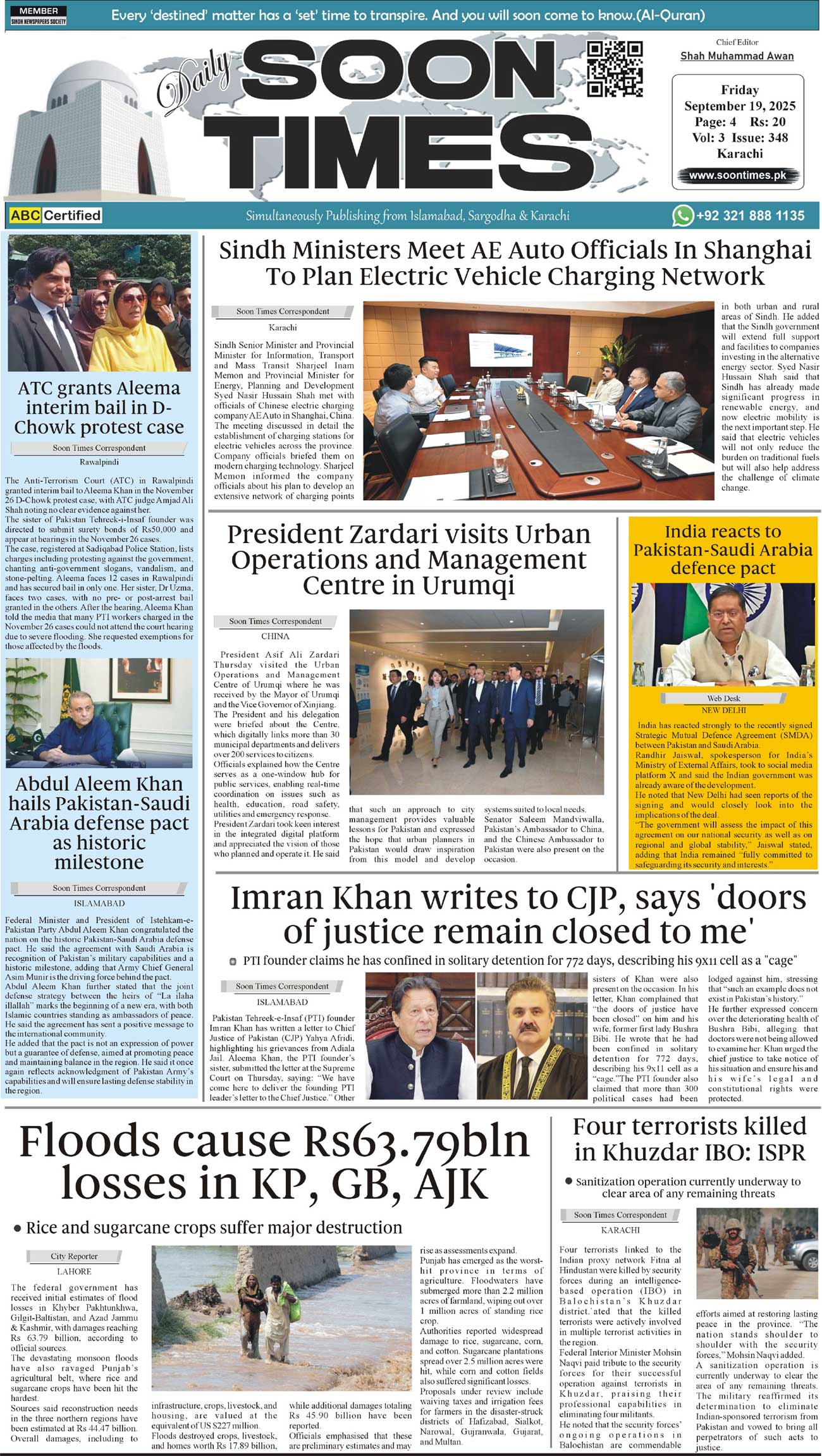 Daily Soon Times September 19, 2025 Daily Soon Times today's ePaper leading English national newspaper from Islamabad, Sargodha, Karachi, Pakistan << First << 1 >> Last >> Page 1Page 2Page 3Page 4 × Daily Soon Times 1k2k3k4k 1k2k3k4k 1k