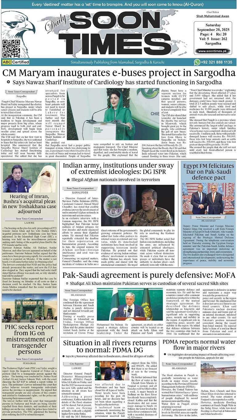 Daily Soon Times September 20, 2025 Daily Soon Times today's ePaper leading English national newspaper from Islamabad, Sargodha, Karachi, Pakistan << First << 1 >> Last >> Page 1Page 2Page 3Page 4 × Daily Soon Times 1234 1234 1