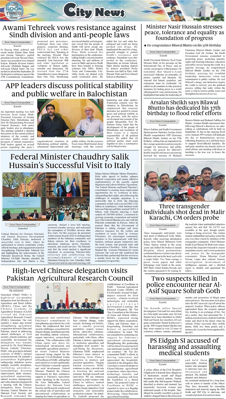 Daily Soon Times Page: 3 September 22, 2025 Daily Soon Times today's ePaper leading English national newspaper from Islamabad, Sargodha, Karachi, Pakistan << First << 3 >> Last >> Page 1Page 2Page 3Page 4 × Daily Soon Times 1k23k4 1k23k4 3k