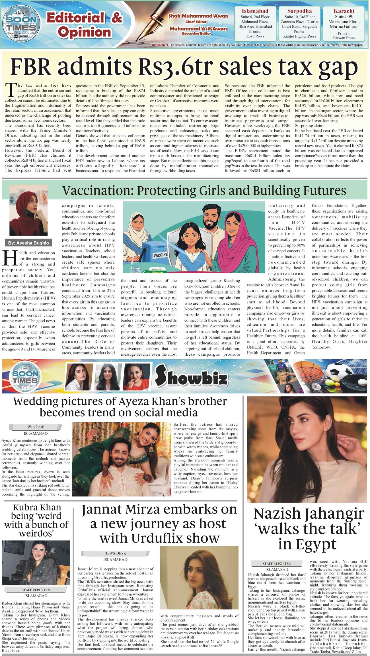 Daily Soon Times Page: 2 September 24, 2025 Daily Soon Times today's ePaper leading English national newspaper from Islamabad, Sargodha, Karachi, Pakistan << First << 2 >> Last >> Page 1Page 2Page 3Page 4 × Daily Soon Times 1234 1234 2