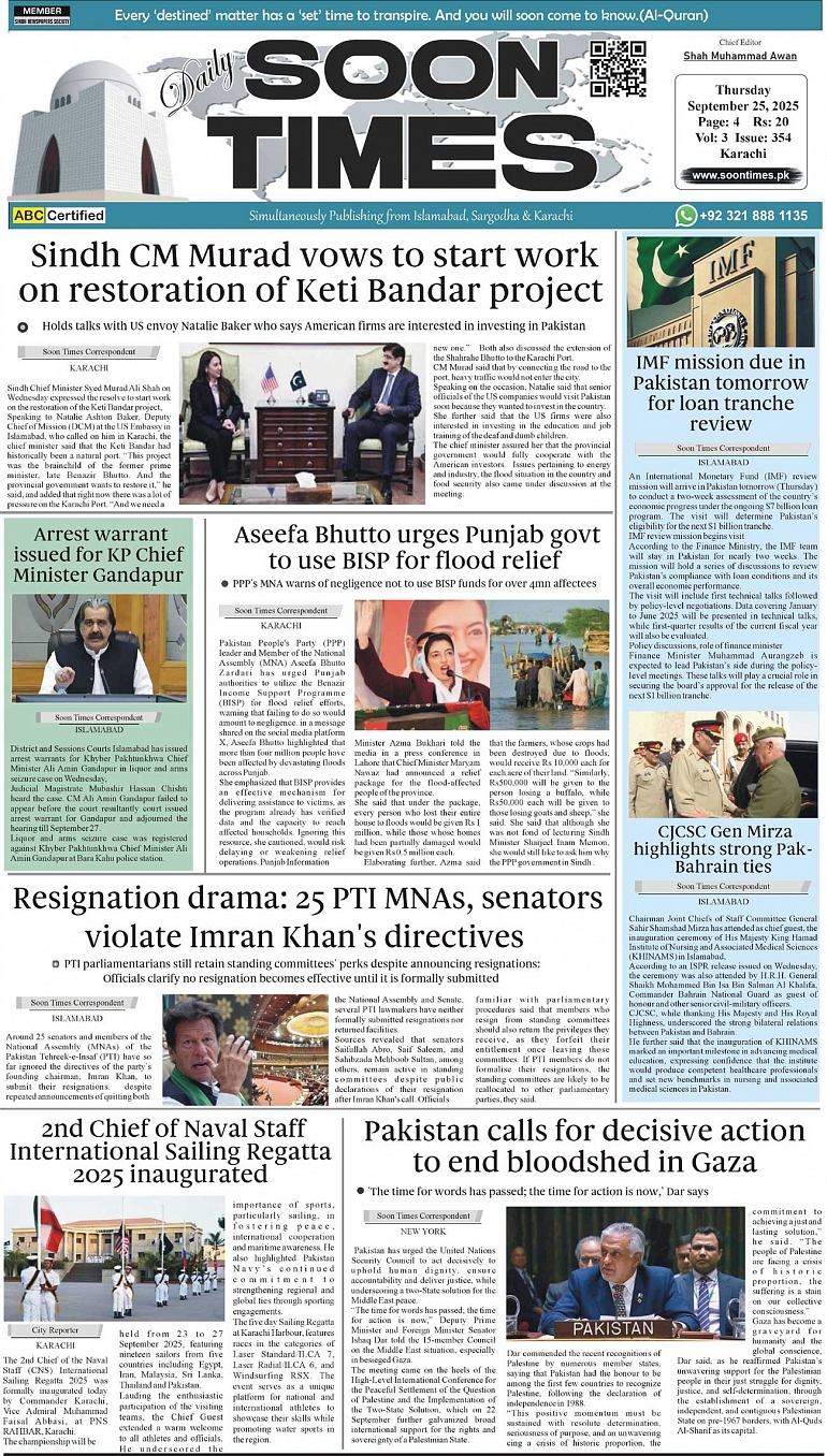 Daily Soon Times today's ePaper leading English national newspaper from Islamabad, Sargodha, Karachi, Pakistan