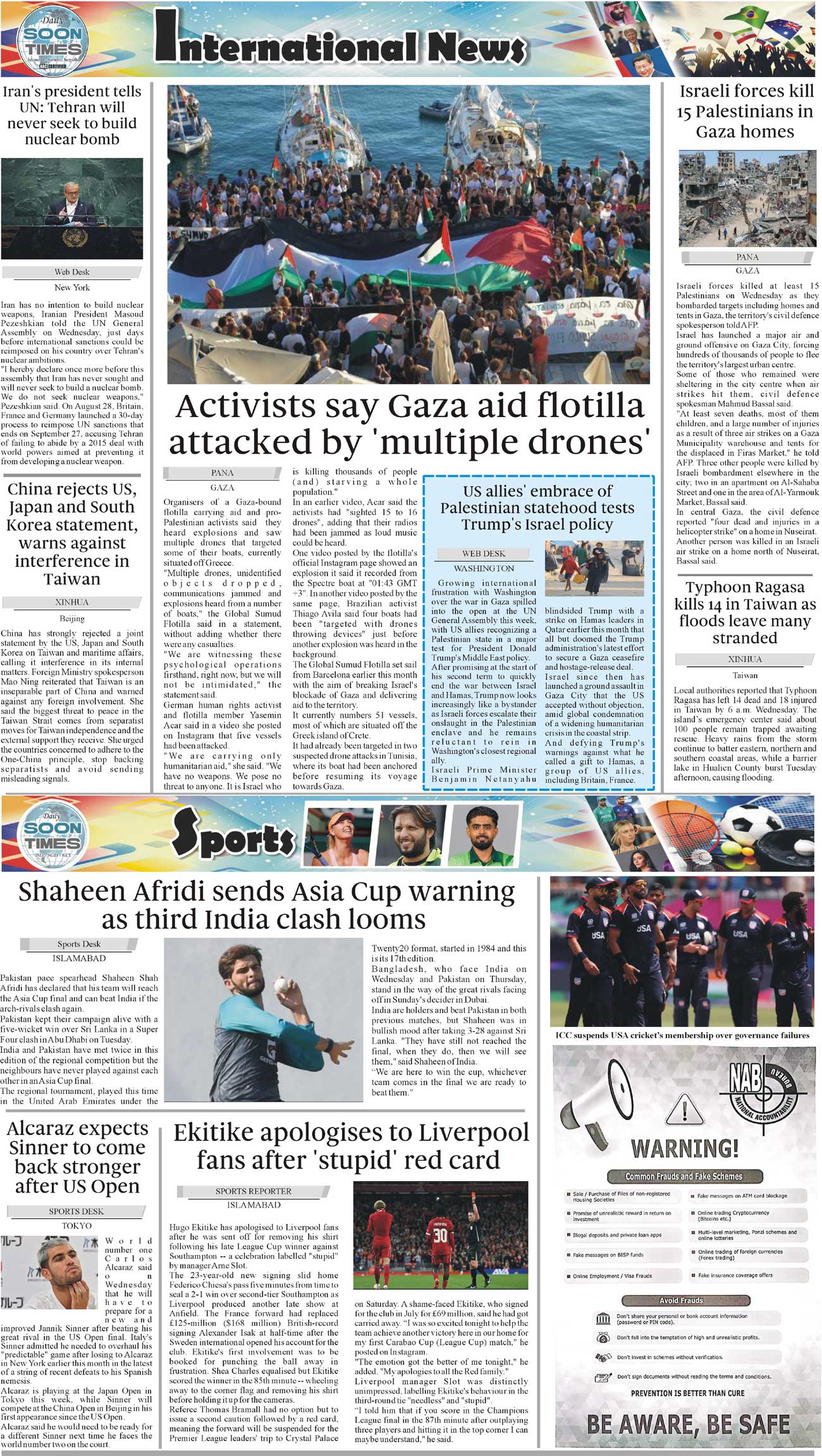 Daily Soon Times Page: 4 September 25, 2025 Daily Soon Times today's ePaper leading English national newspaper from Islamabad, Sargodha, Karachi, Pakistan << First << 4 >> Last >> Page 1Page 2Page 3Page 4 × Daily Soon Times 1k23k4 1k23k4 4