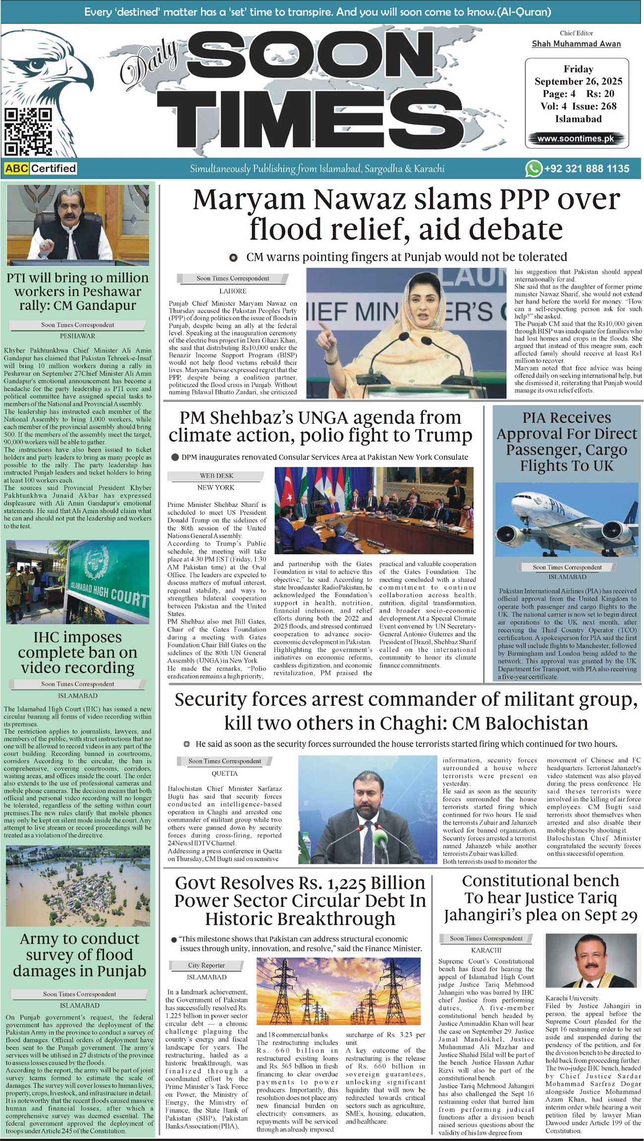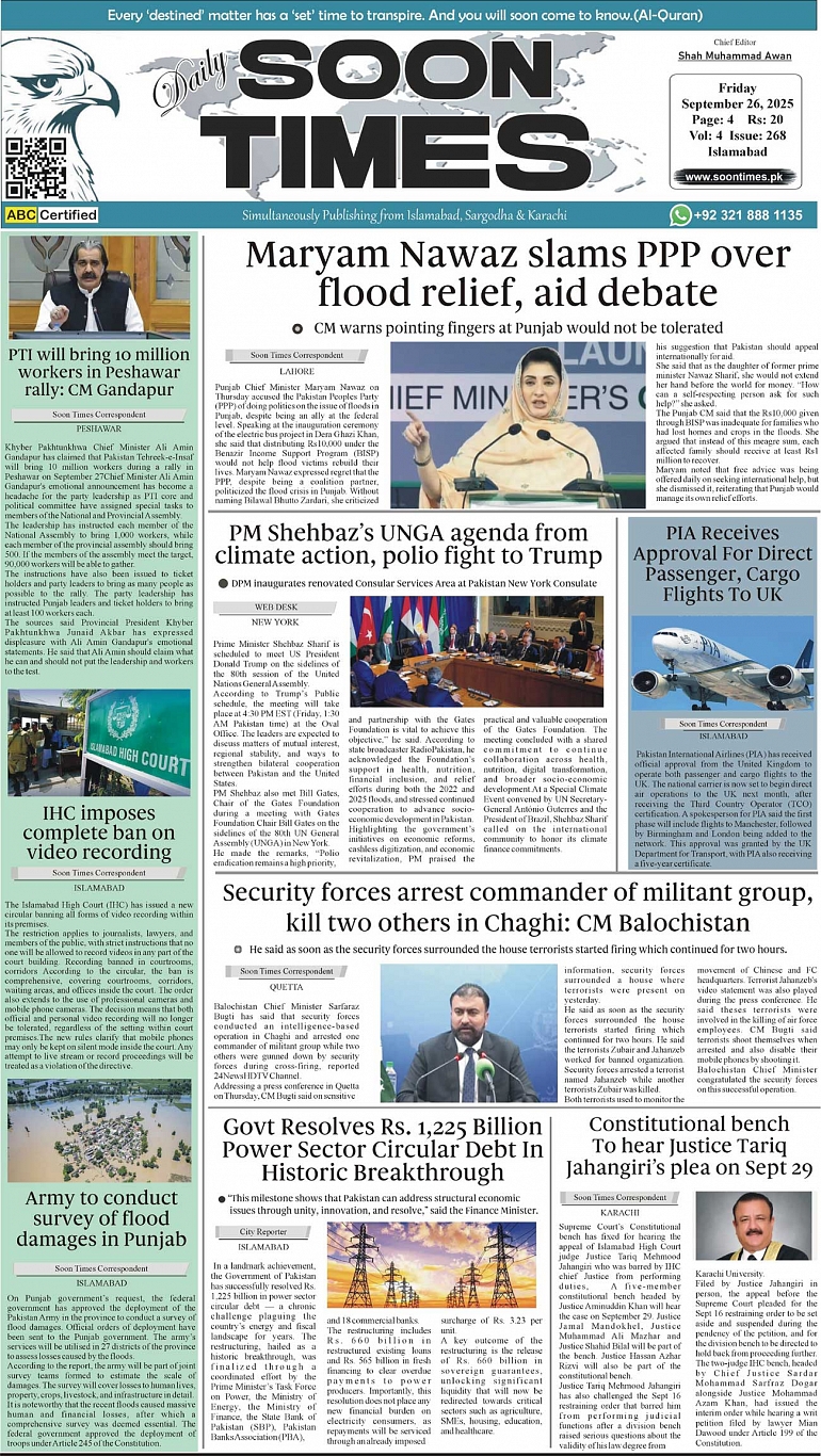 Daily Soon Times September 26, 2025 Daily Soon Times today's ePaper leading English national newspaper from Islamabad, Sargodha, Karachi, Pakistan << First << 1 >> Last >> Page 1Page 2Page 3Page 4 × Daily Soon Times 1234 1234 1