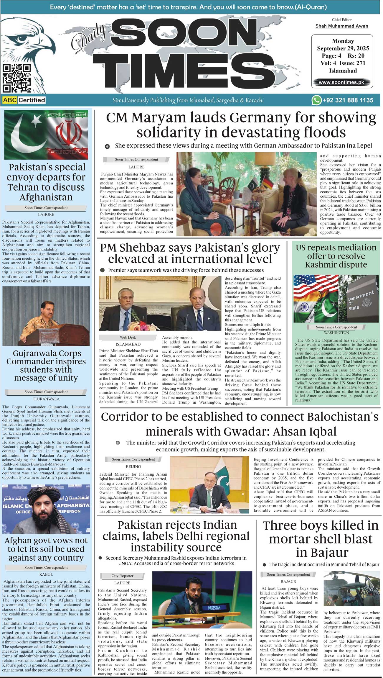 Daily Soon Times today's ePaper leading English national newspaper from Islamabad, Sargodha, Karachi, Pakistan
