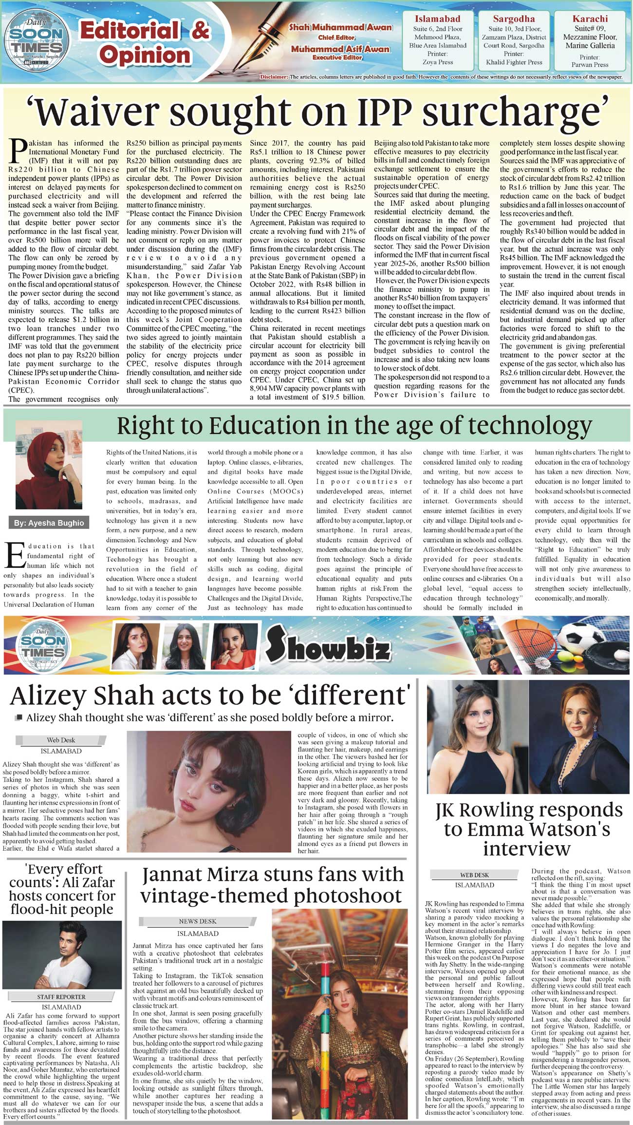 Daily Soon Times Page: 2 September 29, 2025 Daily Soon Times today's ePaper leading English national newspaper from Islamabad, Sargodha, Karachi, Pakistan << First << 2 >> Last >> Page 1Page 2Page 3Page 4 × Daily Soon Times 1234 1234 2