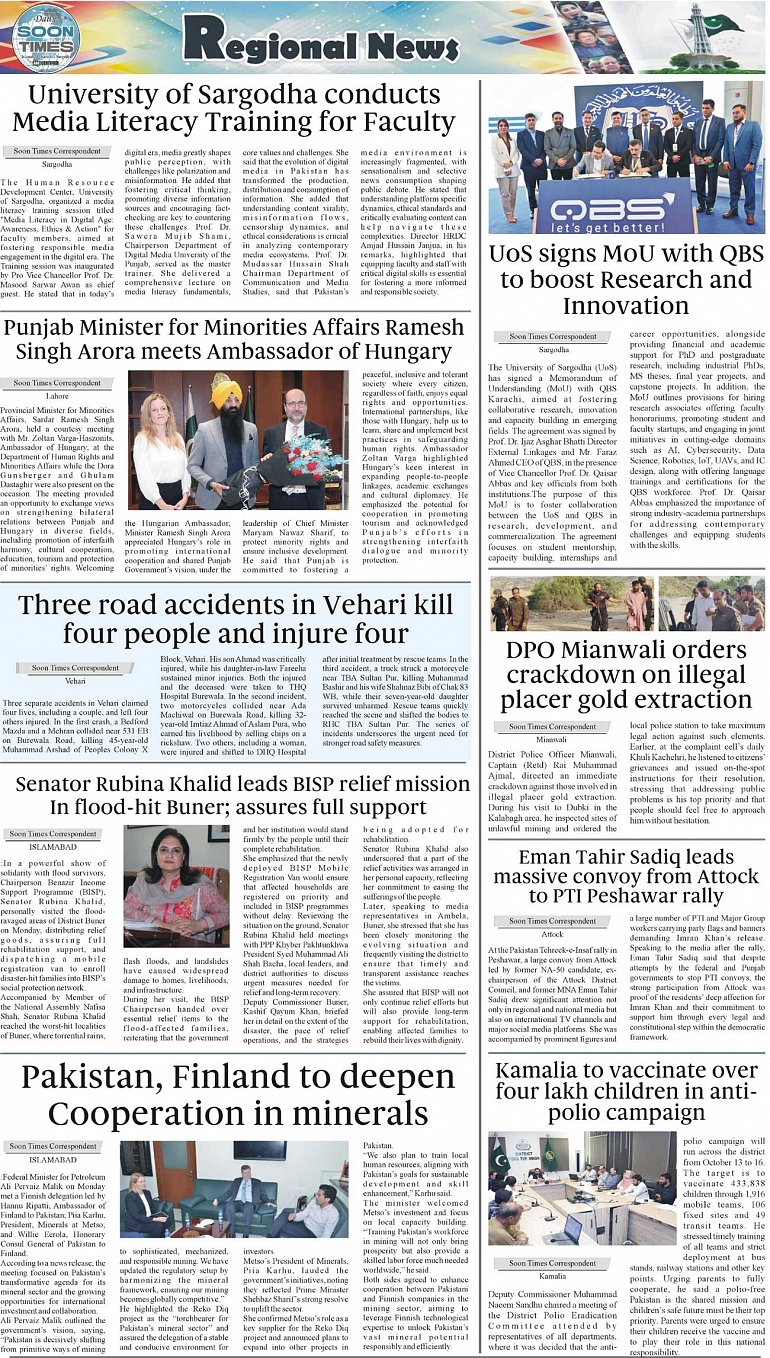 Daily Soon Times Page: 3 September 30, 2025 Daily Soon Times today's ePaper leading English national newspaper from Islamabad, Sargodha, Karachi, Pakistan << First << 3 >> Last >> Page 1Page 2Page 3Page 4 × Daily Soon Times 1s234s 1s234s 3