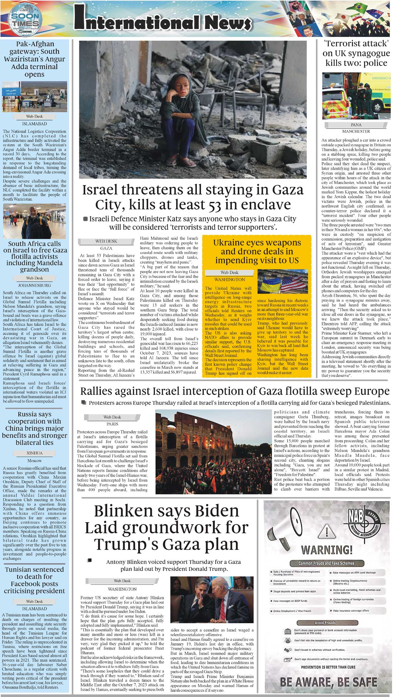 Daily Soon Times Page: 4 October 04, 2025 Daily Soon Times today's ePaper leading English national newspaper from Islamabad, Sargodha, Karachi, Pakistan << First << 4 >> Last >> Page 1Page 2Page 3Page 4 × Daily Soon Times 1k23k4 1k23k4 4