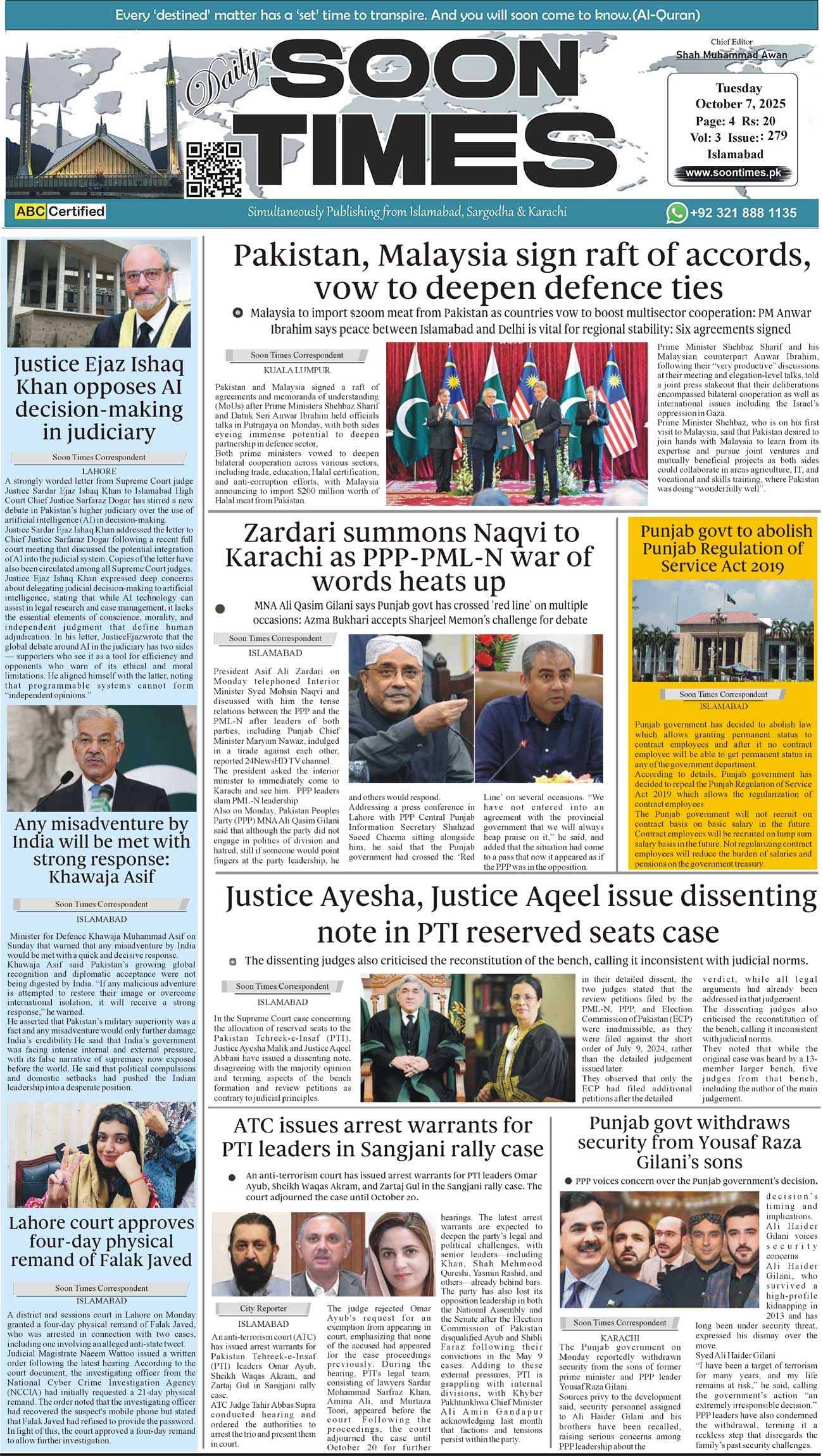 Daily Soon Times October 07, 2025 Daily Soon Times today's ePaper leading English national newspaper from Islamabad, Sargodha, Karachi, Pakistan << First << 1 >> Last >> Page 1Page 2Page 3Page 4 × Daily Soon Times 1.234 1.234 1.