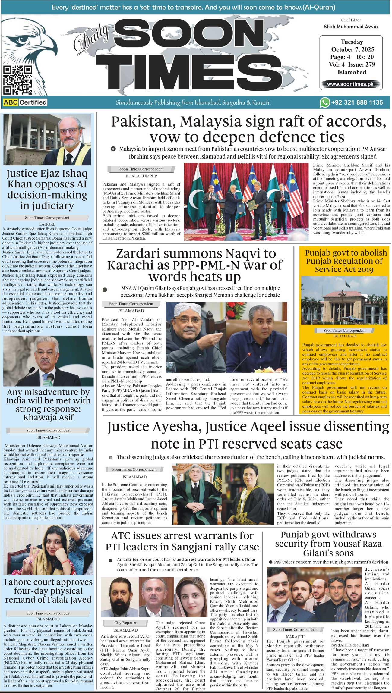 Daily Soon Times today's ePaper leading English national newspaper from Islamabad, Sargodha, Karachi, Pakistan