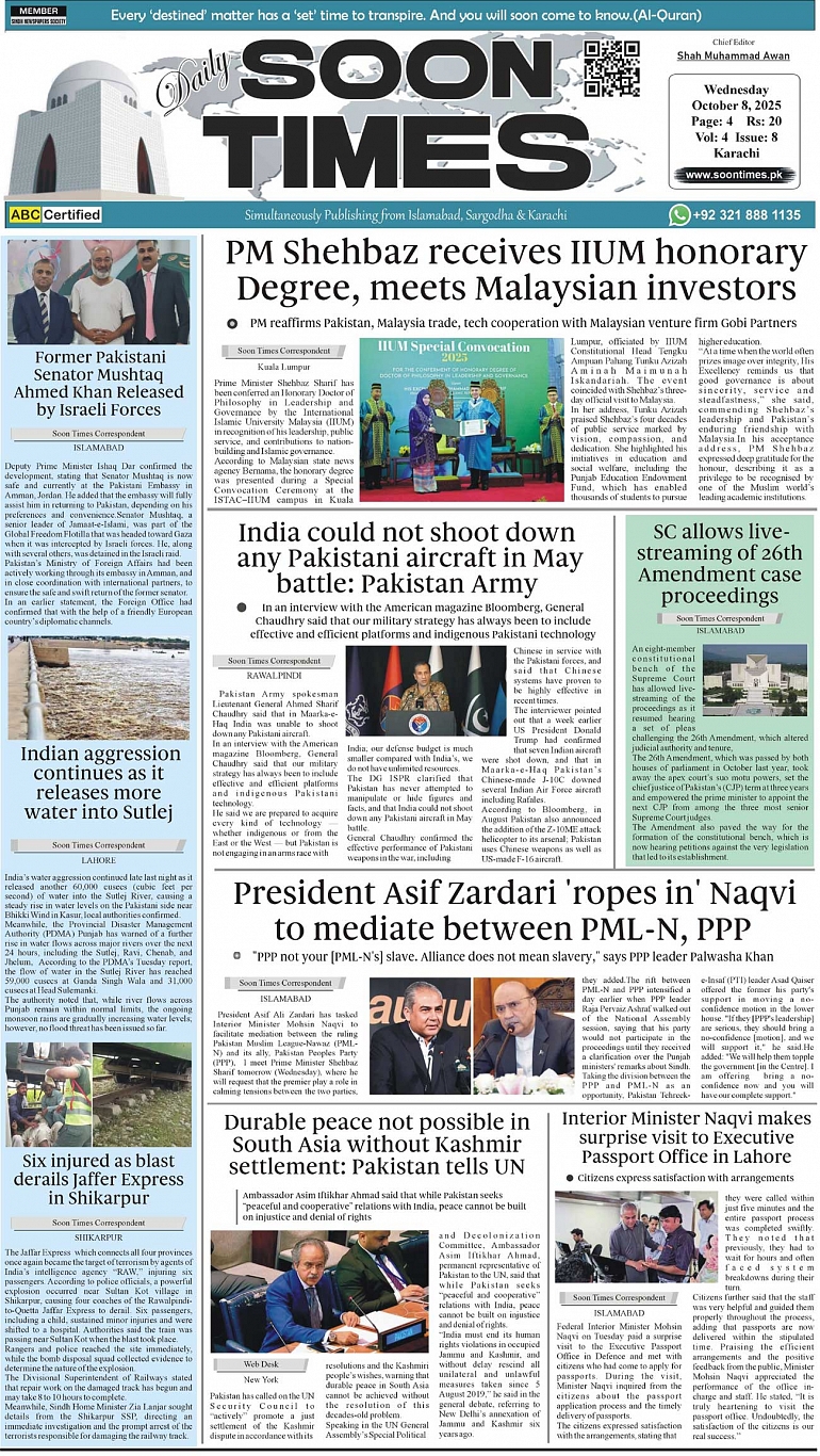 Daily Soon Times today's ePaper leading English national newspaper from Islamabad, Sargodha, Karachi, Pakistan