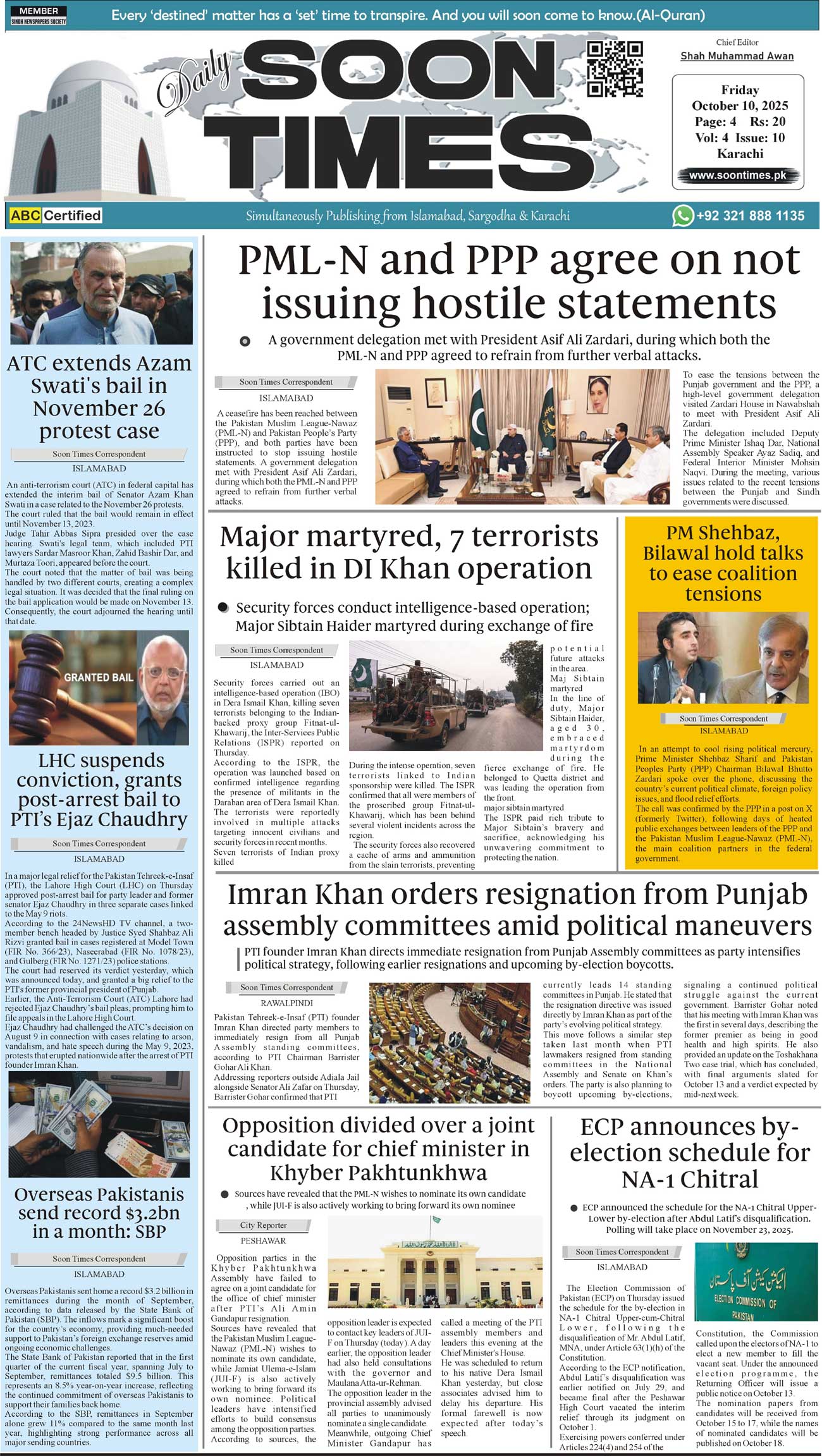 Daily Soon Times October 10, 2025 Daily Soon Times today's ePaper leading English national newspaper from Islamabad, Sargodha, Karachi, Pakistan << First << 1 >> Last >> Page 1Page 2Page 3Page 4 × Daily Soon Times 1k23k4s 1k23k4s 1k