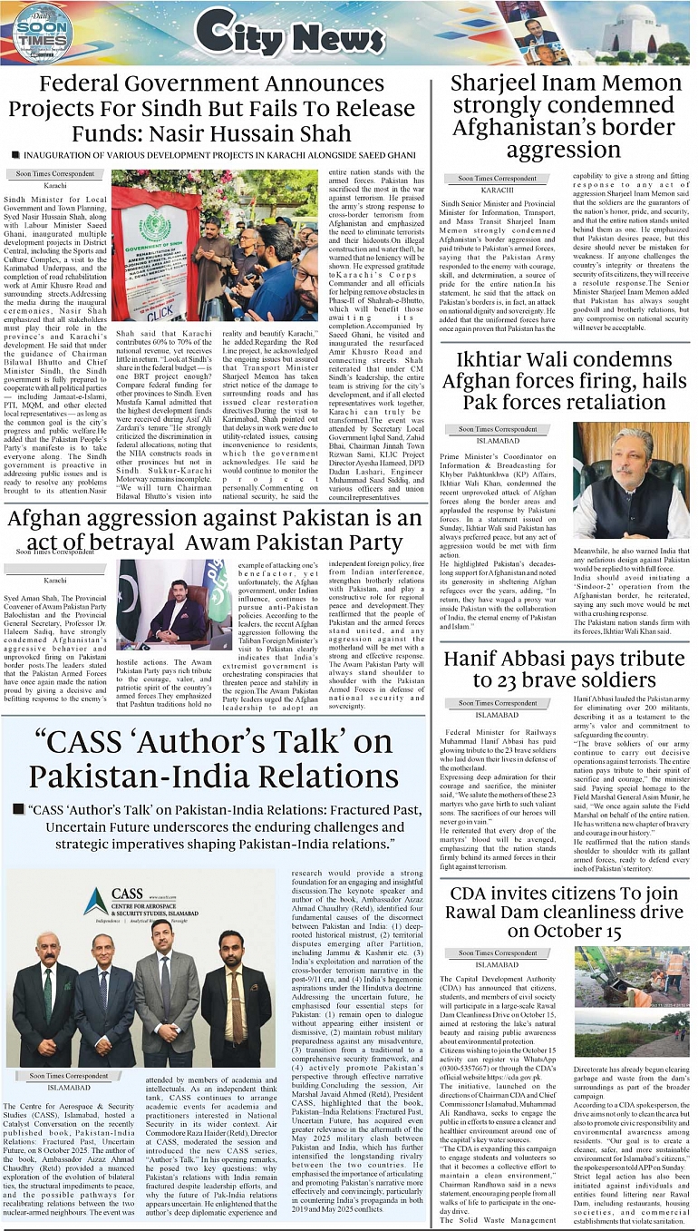 Daily Soon Times Page: 3 October 13, 2025 Daily Soon Times today's ePaper leading English national newspaper from Islamabad, Sargodha, Karachi, Pakistan << First << 3 >> Last >> Page 1Page 2Page 3Page 4 × Daily Soon Times 1k23k4 1k23k4 3k