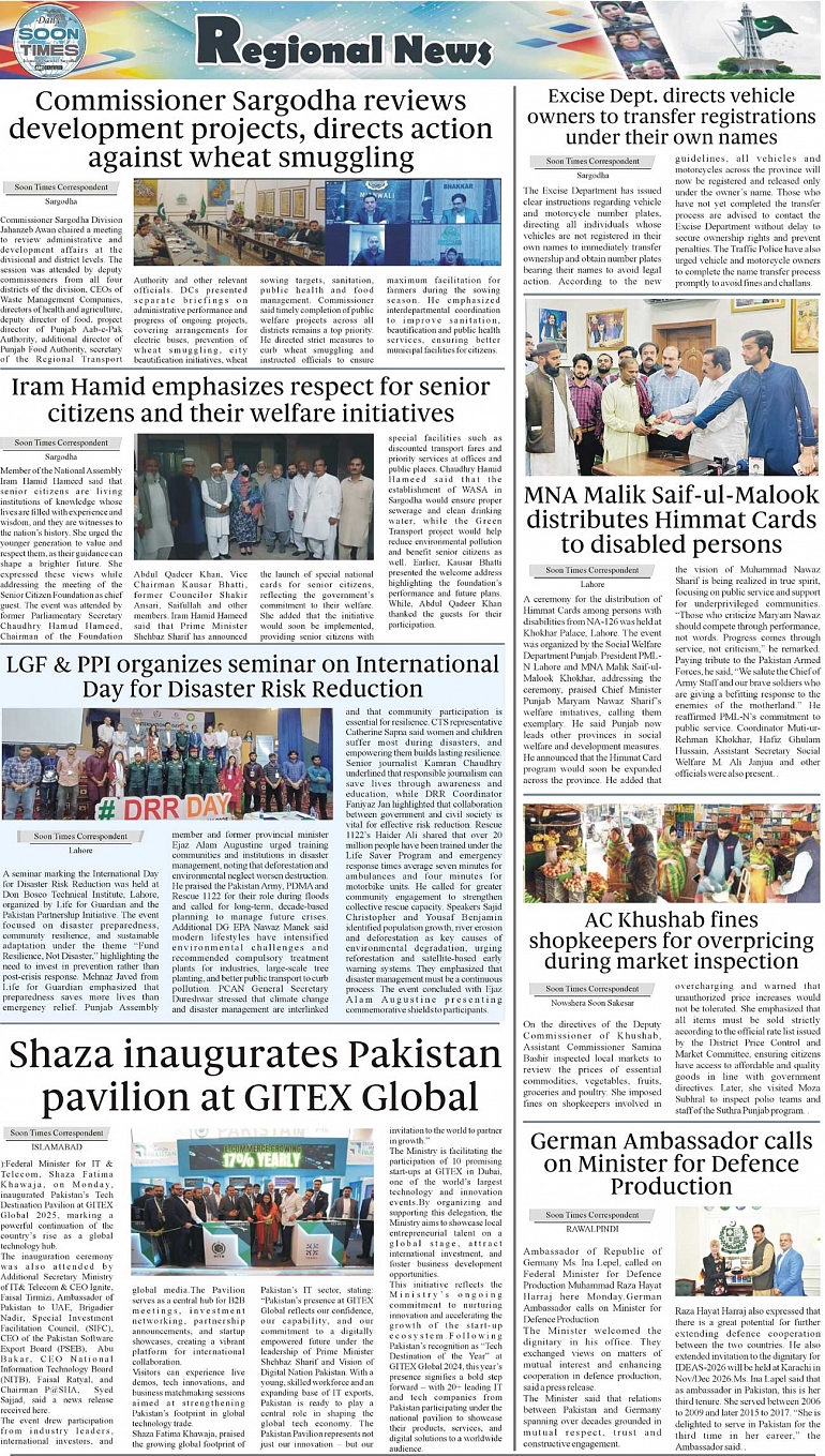 Daily Soon Times Page: 3 October 14, 2025 Daily Soon Times today's ePaper leading English national newspaper from Islamabad, Sargodha, Karachi, Pakistan << First << 3 >> Last >> Page 1Page 2Page 3Page 4 × Daily Soon Times 1234 1234 3
