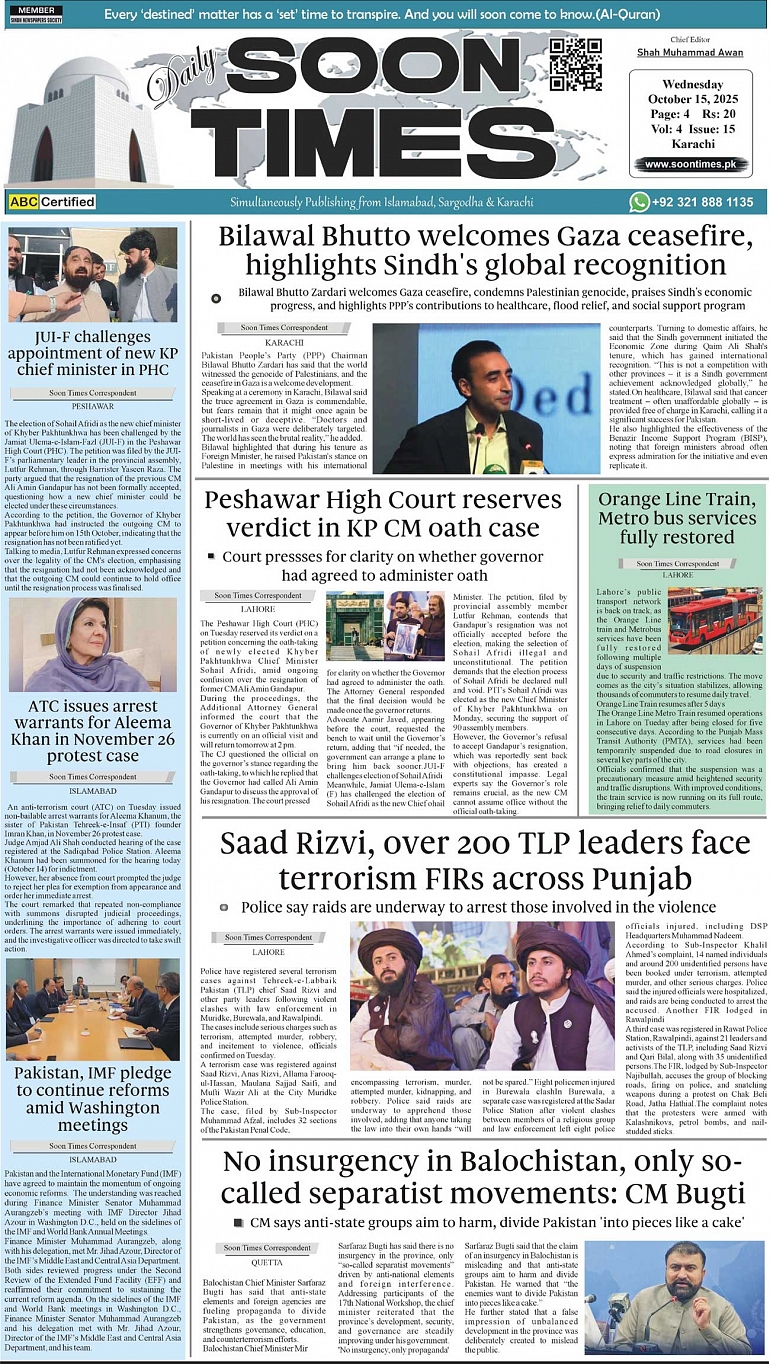 Daily Soon Times October 15, 2025 Daily Soon Times today's ePaper leading English national newspaper from Islamabad, Sargodha, Karachi, Pakistan << First << 1 >> Last >> Page 1Page 2Page 3Page 4 × Daily Soon Times 1k23k4 1k23k4 1k