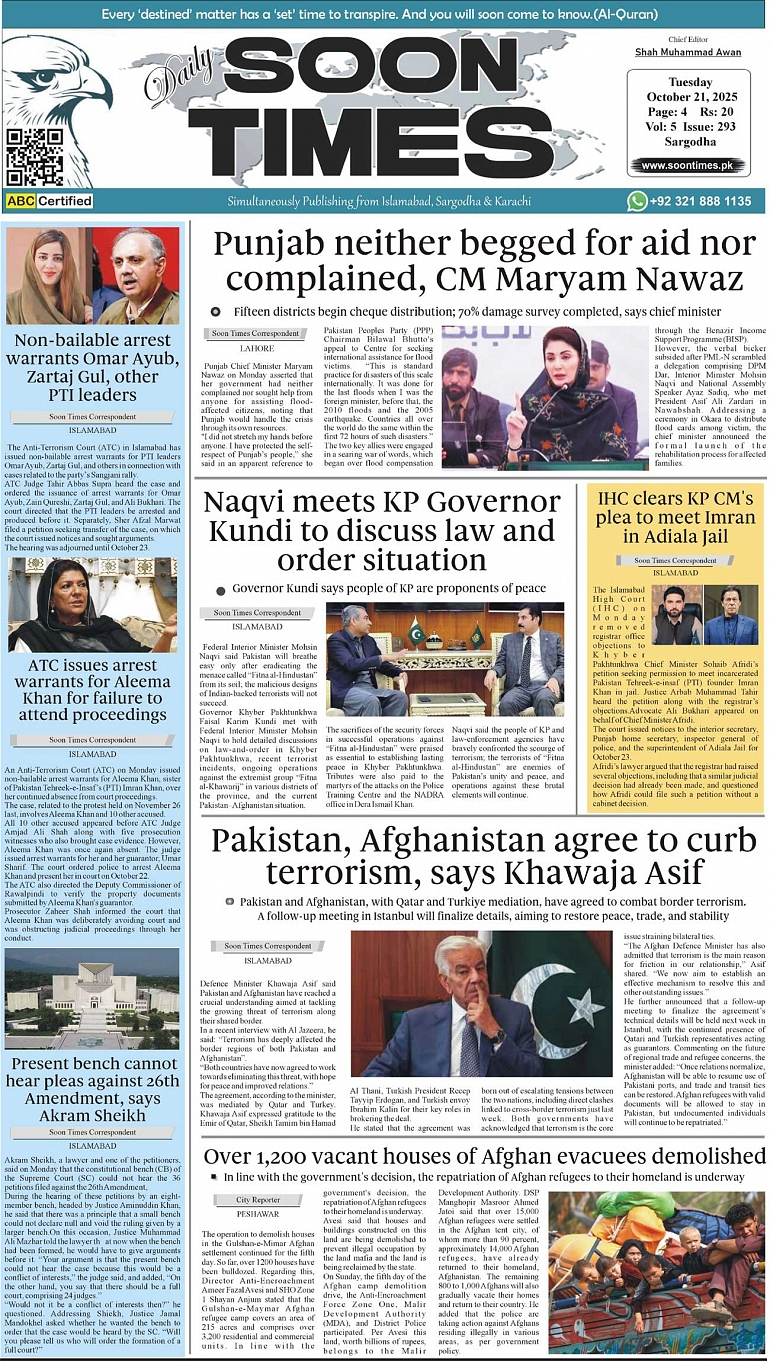 Daily Soon Times October 21, 2025 Daily Soon Times today's ePaper leading English national newspaper from Islamabad, Sargodha, Karachi, Pakistan << First << 1 >> Last >> Page 1Page 2Page 3Page 4 × Daily Soon Times 1234 1234 1
