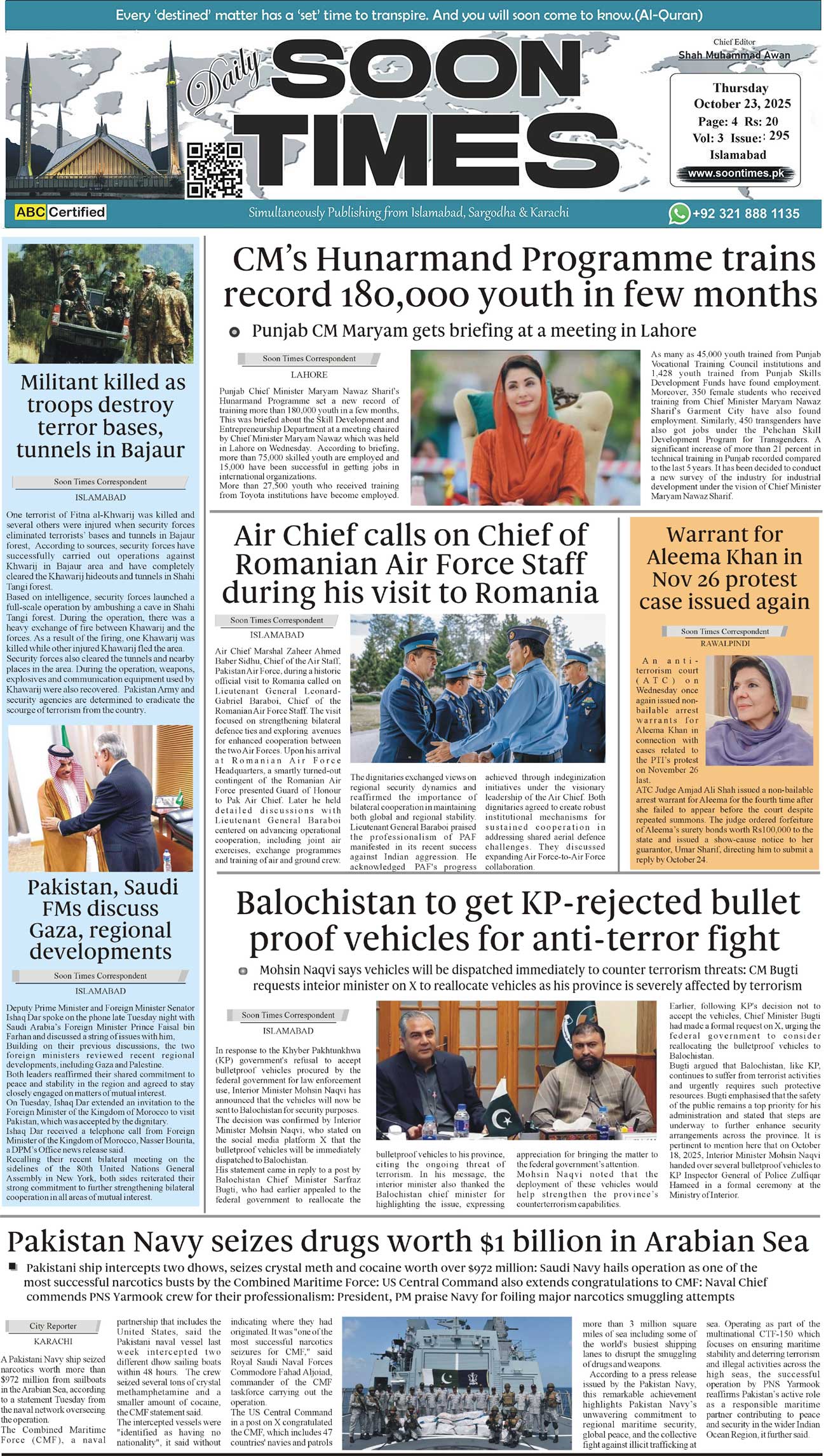 Daily Soon Times today's ePaper leading English national newspaper from Islamabad, Sargodha, Karachi, Pakistan