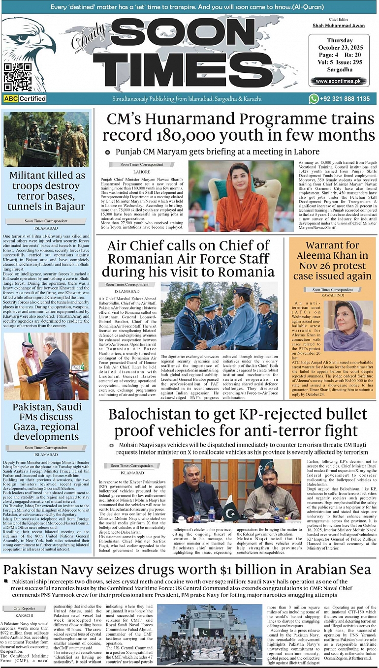 Daily Soon Times October 23, 2025 Daily Soon Times today's ePaper leading English national newspaper from Islamabad, Sargodha, Karachi, Pakistan << First << 1 >> Last >> Page 1Page 2Page 3Page 4 × Daily Soon Times 1234 1234 1