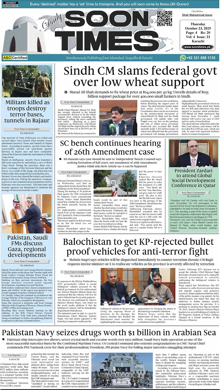 Daily Soon Times October 23, 2025 Daily Soon Times today's ePaper leading English national newspaper from Islamabad, Sargodha, Karachi, Pakistan << First << 1 >> Last >> Page 1Page 2Page 3Page 4 × Daily Soon Times 1k23k4 1k23k4 1k