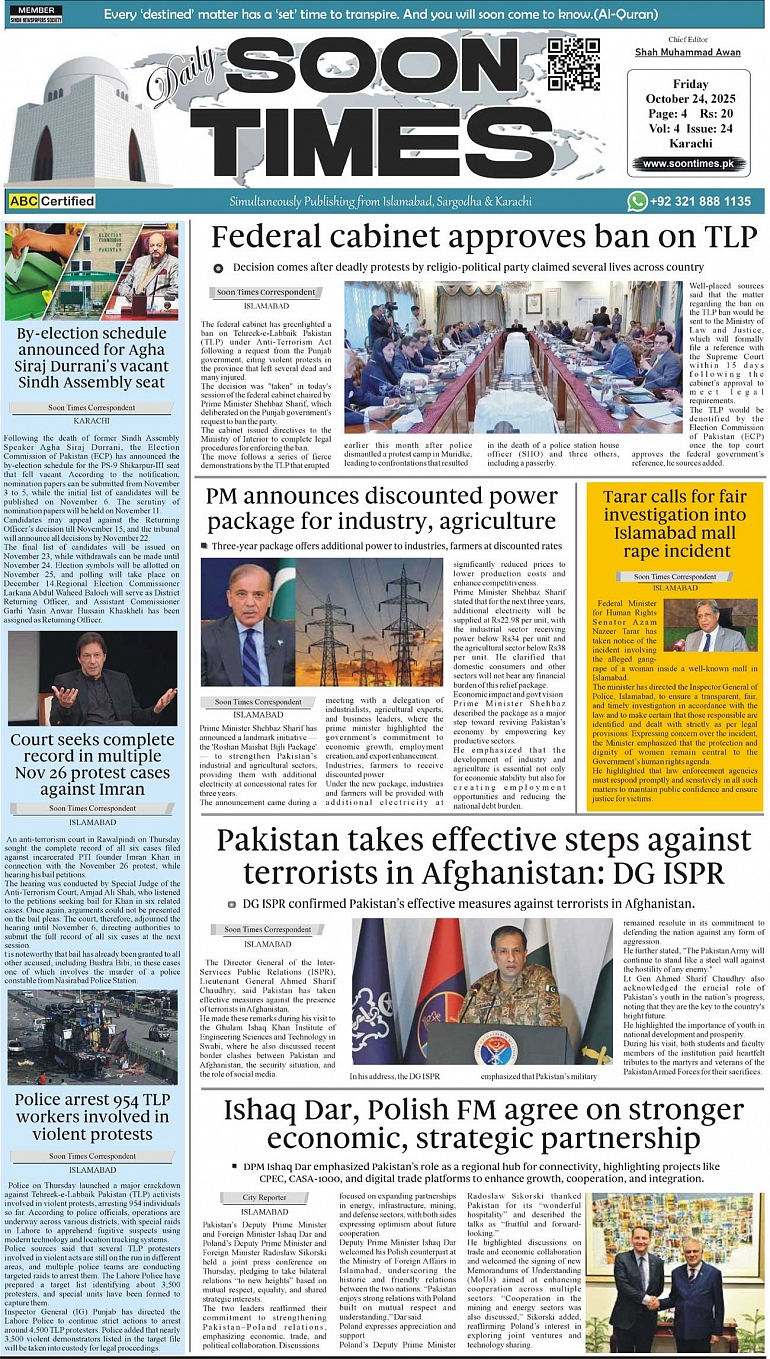 Daily Soon Times today's ePaper leading English national newspaper from Islamabad, Sargodha, Karachi, Pakistan