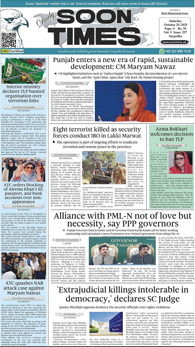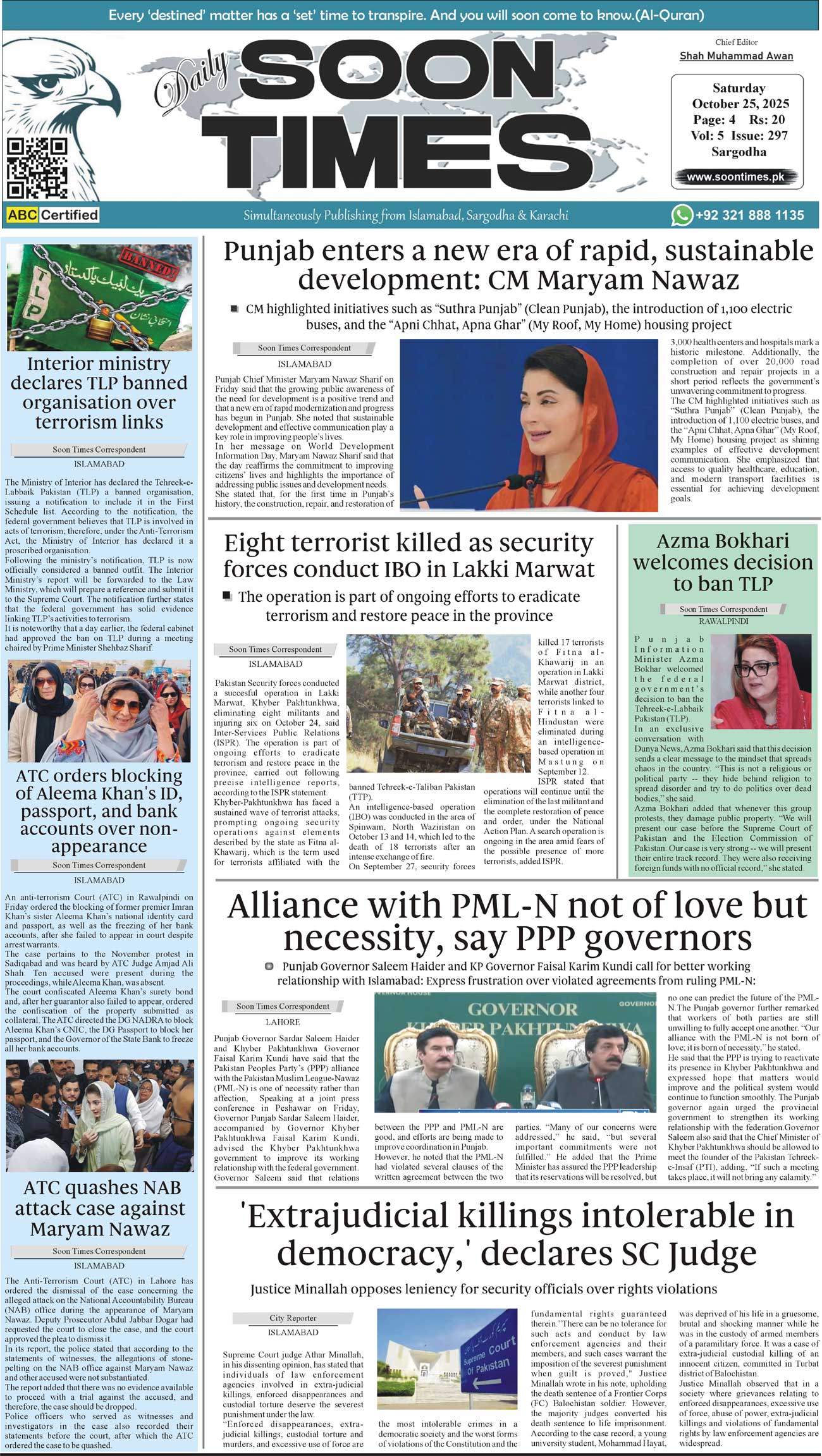 Daily Soon Times today's ePaper leading English national newspaper from Islamabad, Sargodha, Karachi, Pakistan