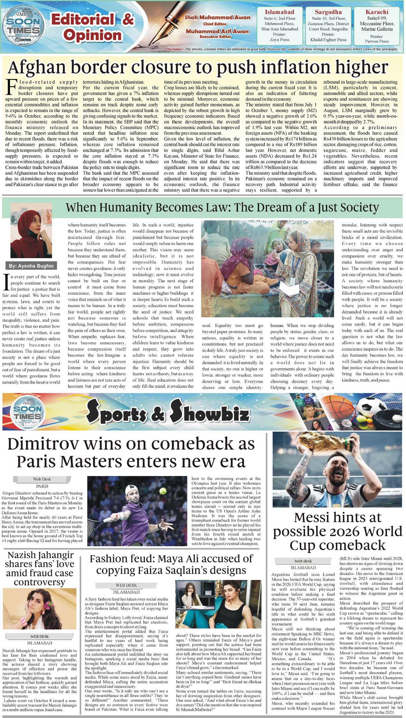 Daily Soon Times Page: 2 October 29, 2025 Daily Soon Times today's ePaper leading English national newspaper from Islamabad, Sargodha, Karachi, Pakistan << First << 2 >> Last >> Page 1Page 2Page 3Page 4 × Daily Soon Times 1234 1234 2