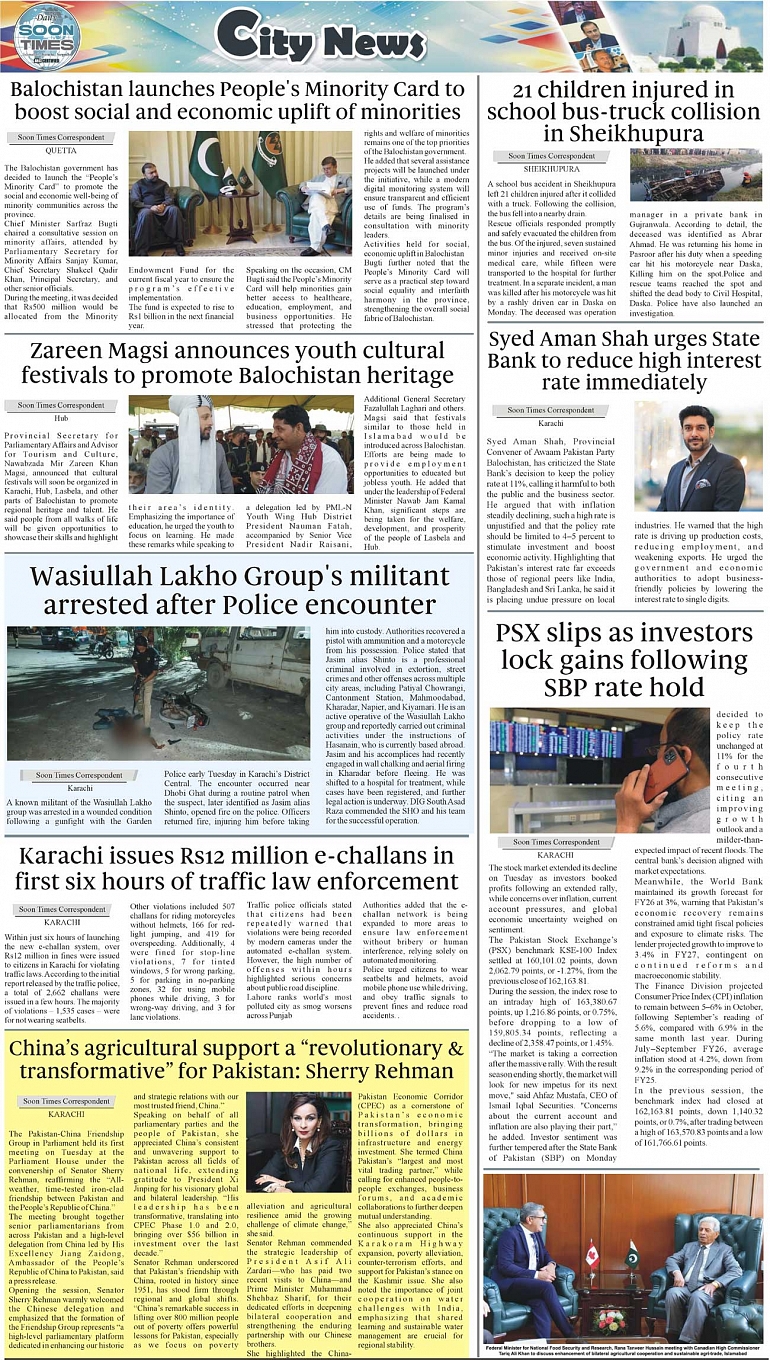 Daily Soon Times Page: 3 October 29, 2025 Daily Soon Times today's ePaper leading English national newspaper from Islamabad, Sargodha, Karachi, Pakistan << First << 3 >> Last >> Page 1Page 2Page 3Page 4 × Daily Soon Times 1k23k4k 1k23k4k 3k